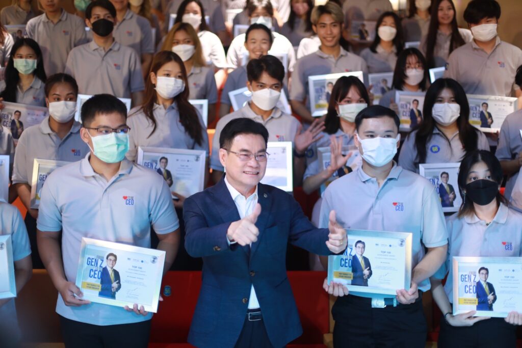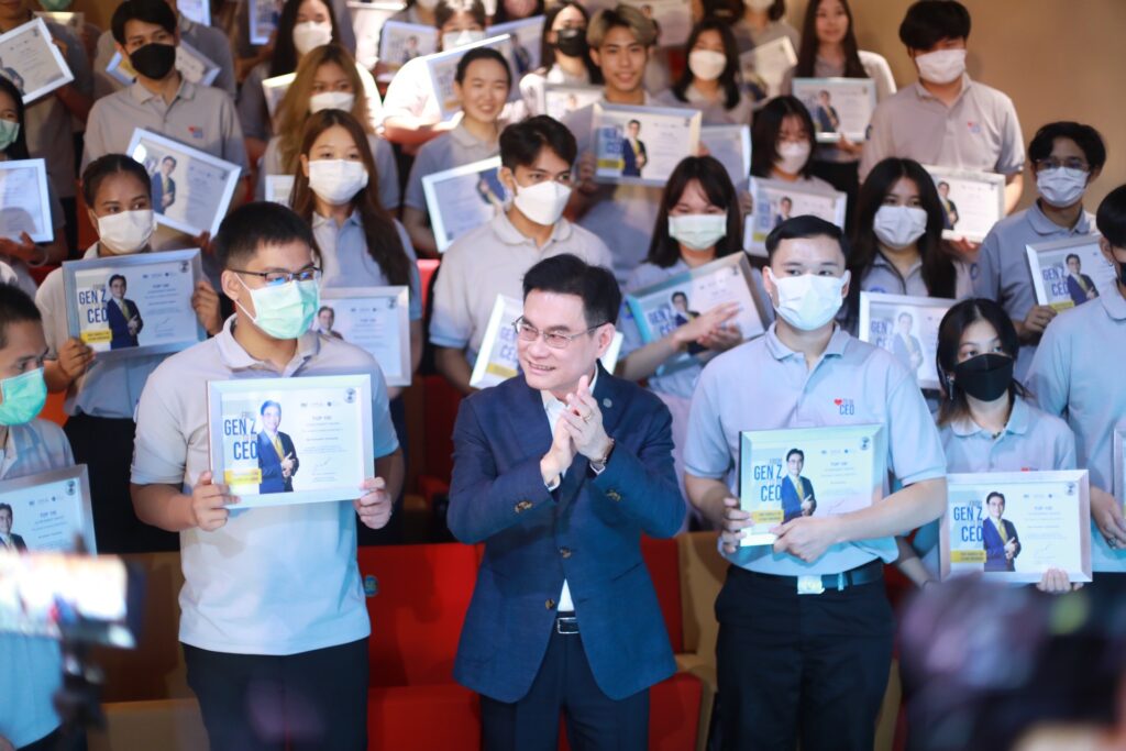 นายจุรินทร์ฯ กล่าวว่า ตนเชื่อว่าทุกคนจะต้องภาคภูมิใจที่สามารถทำแบบทดสอบได้คะแนนสูงสุดเป็น 1 ใน 100 จากผู้เข้าร่วมโครงการทั้งหมดกว่า 16,000 คนในปีนี้ สำหรับโครงการปั้น Gen Z ให้เป็น CEO เป็นนโยบายที่กรมส่งเสริมการค้าระหว่างประเทศ โดยสถาบันผู้ประกอบการการค้ายุคใหม่ (NEA) ดำเนินการมาตลอด 3 ปี ถือเป็นความภาคภูมิใจของพวกเรากระทรวงพาณิชย์ทุกคน และเป็นนโยบายสำคัญที่ตนเน้นย้ำให้ดำเนินการโดยต่อเนื่อง ตั้งเป้าหมายที่ชัดเจนว่าแต่ละปีจะผลิตได้จำนวนเท่าไหร่ เพื่อให้น้องๆ เจเนอเรชั่นใหม่ของประเทศ มีโอกาสเดินหน้าไปสู่ฝันที่ฝันไว้ ซึ่งตนเชื่อว่าน้อง Gen Z จำนวนมากฝันว่าจะเป็นนายตัวเองมากกว่าอยู่ในองค์กรอย่างเนิ่นนานจนเกษียณอายุเหมือนเจเนอเรชั่นก่อนหน้า การเป็นนายตัวเองที่เป็นรูปธรรมชัดเจน คือความเป็น CEO ขององค์กรธุรกิจที่ตนเองก่อตั้งขึ้น โครงการปั้น Gen Z เป็น CEO ของกระทรวงพาณิชย์จึงเกิดขึ้น เพื่อให้น้องรุ่นใหม่เป็นแม่ทัพทั้งในภาคการผลิต ภาคบริการ ภาคการตลาด บริหารจัดการทั้งในประเทศและต่างประเทศ เพื่อขับเคลื่อนเศรษฐกิจของตนเอง ครอบครัว สังคมและประเทศในอนาคตต่อไป ซึ่งดำเนินการมา 3 ปี ตั้งแต่ปี 2563-2565 มีสถาบันการศึกษาเข้าร่วมโครงการถึง 104 แห่งจากทั่วประเทศ และพันธมิตรธุรกิจระดับประเทศ ระดับภูมิภาคและระดับโลกร่วมโครงการ ไม่ว่าจะเป็น True Huawei Bitkub EXIM Bank Shopee P&G Coro Brothers หรืออื่นๆ ขอขอบคุณที่เข้ามาร่วมโครงการกับกระทรวงพาณิชย์จนประสบความสำเร็จทำให้ 3 ปีสามารถปั้น Gen Z เป็น CEO ได้ถึง 36,521 ราย เพื่อเป็นกำลังสำคัญในการขับเคลื่อนเศรษฐกิจของประเทศต่อไปในอนาคตทั้งเศรษฐกิจในประเทศและส่งออกเพื่อนำรายได้เข้าประเทศต่อไป