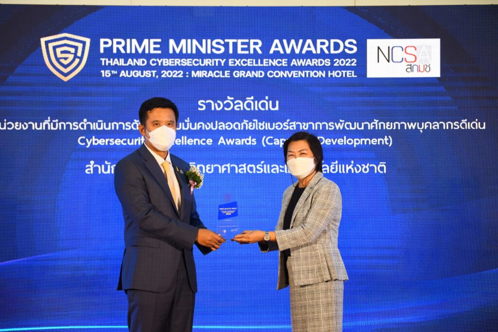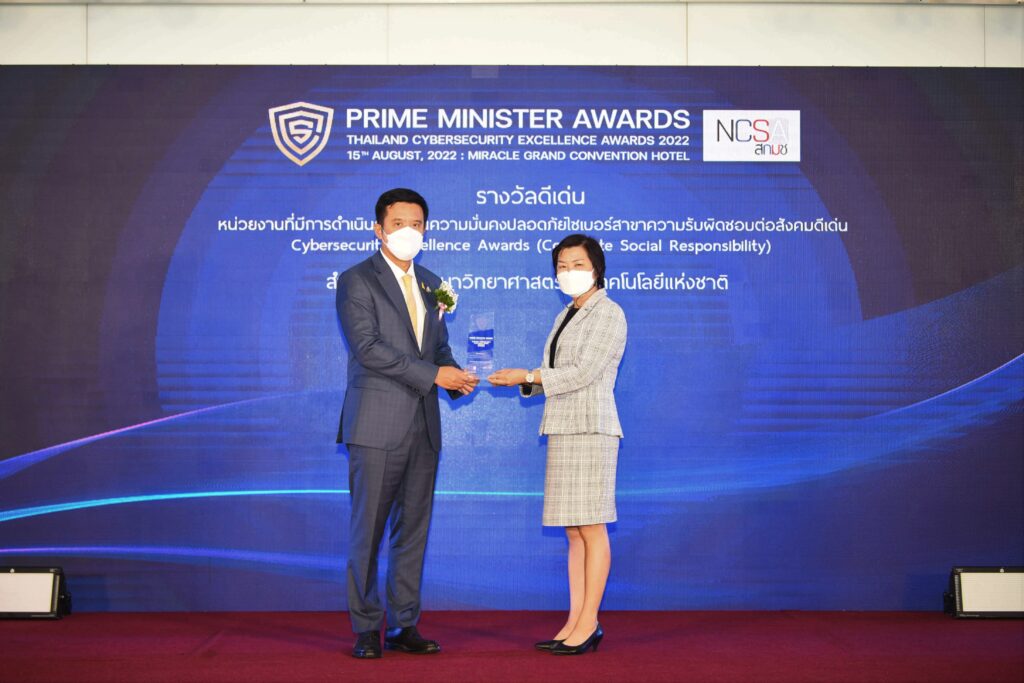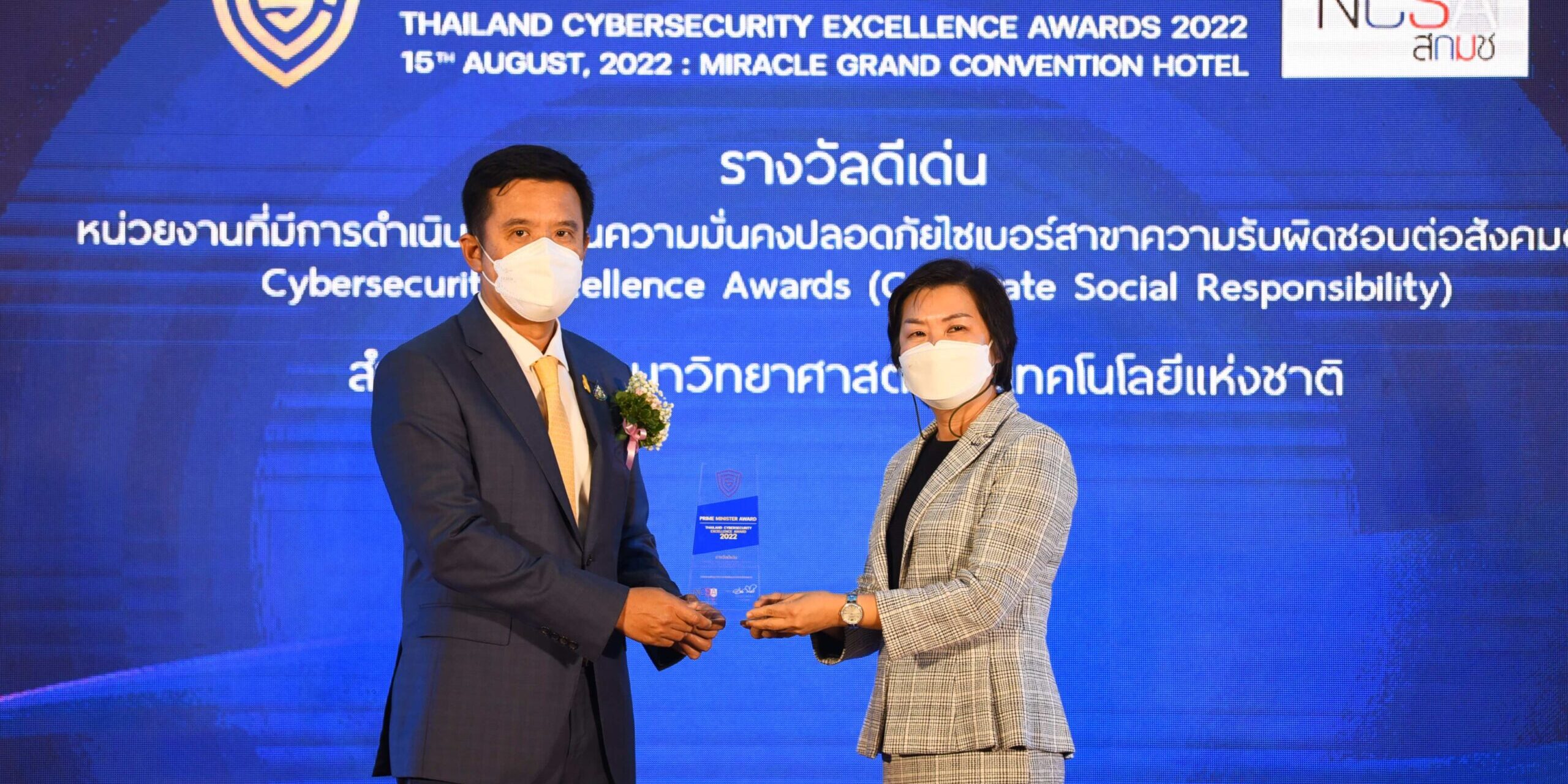 โดย (สวทช.) ได้รับรางวัล หน่วยงานที่มีการดำเนินการด้านความมั่นคงปลอดภัยไซเบอร์ สาขาความรับผิดชอบต่อสังคมดีเด่น และ สาขาการพัฒนาศักยภาพบุคลากรดีเด่น ซึ่งที่ผ่านมาได้ดำเนินการ และให้ความสำคัญเป็นอย่างยิ่ง ในการสร้างนโยบาย มาตรฐาน และความร่วมมือด้านความมั่นคงปลอดภัยไซเบอร์ทั้งภายในและภายนอกองค์กรมาโดยตลอด