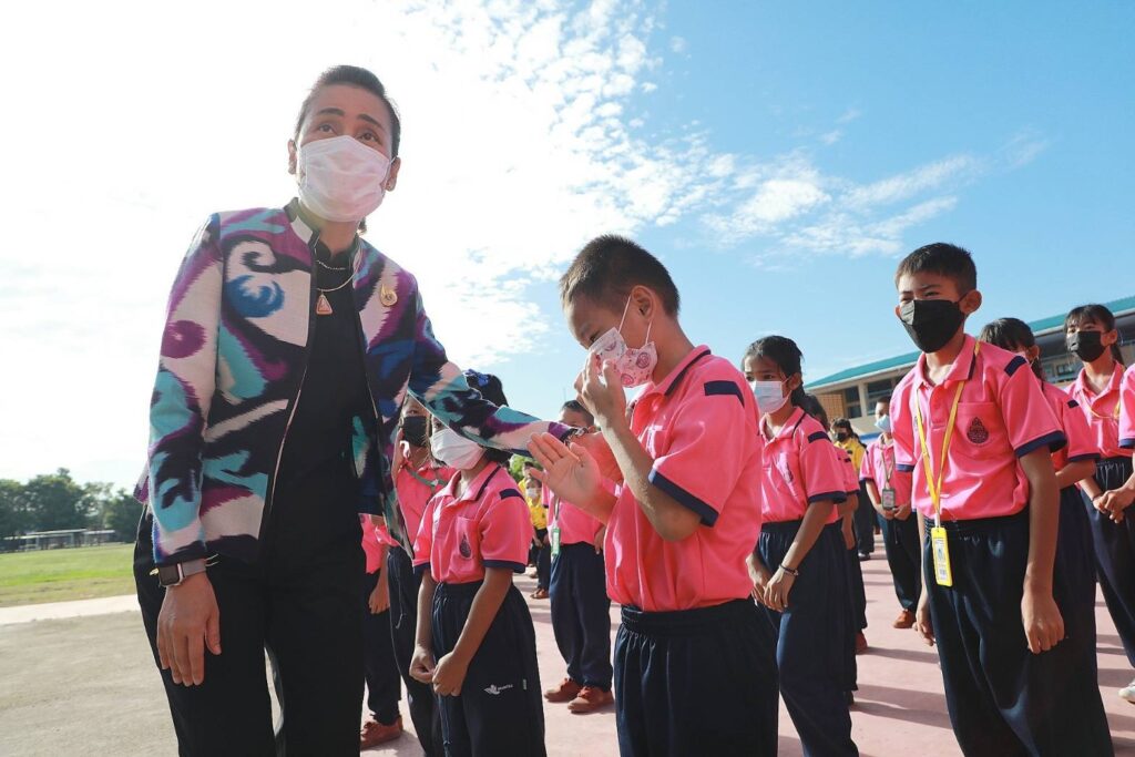 รมช.ศธ. ได้ร่วมเคารพธงชาติกับนักเรียน พร้อมเป็นประธานเปิดโครงการการพัฒนาการจัดการเรียนรู้สะเต็มศึกษา (STEM) และวันวิทยาศาสตร์ประจำปีการศึกษา 2565 ก่อนเยี่ยมชมบูธกิจกรรมของนักเรียน และตรวจเยี่ยมการจัดการศึกษาโรงเรียนคุณภาพ