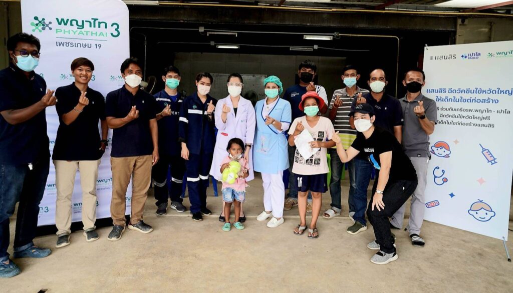เมื่อวันที่ 18 สิงหาคม 2565 : โรงพยาบาลพญาไท 3 ร่วมกับเครือแสนสิริ จัดกิจกรรม CSR ให้กับหมู่บ้านเครือแสนสิริ โดยมอบวัคซีนไข้หวัดใหญ่ให้แก่ ลูกคนงานภายในแคมป์ก่อสร้าง หมู่บ้านคณาสิริ ราชพฤกษ์ 346 โดยได้รับเกียรติจาก พญ.ฐิติอร นาคบุญนำ กุมารแพทย์หัวหน้าศูนย์สุขภาพเด็ก รพ.พญาไท 3 ร่วมด้วยพยาบาลศูนย์สุขภาพเด็กและทีมพยาบาลแผนกฉุกเฉิน