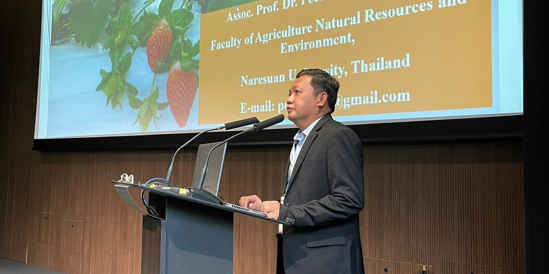 รองศาสตราจารย์ ดร.พีระศักดิ์ ฉายประสาท อาจารย์ประจำภาควิชาวิทยาศาสตร์การเกษตร คณะเกษตรศาสตร์ทรัพยากรธรรมชาติ และสิ่งแวดล้อม มหาวิทยาลัยนเรศวร พร้อมด้วยนักศึกษาปริญญาเอก เข้า