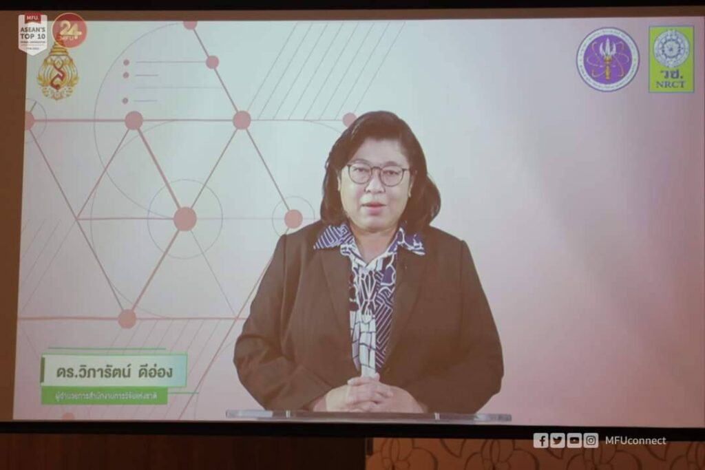 ดร.วิภารัตน์ ดีอ่อง ผู้อำนวยการสำนักงานการวิจัยแห่งชาติ (วช.) ได้กล่าวถึงความสำคัญของมหาวิทยาลัยนเรศวร,มหาวิทยาลัยแม่ฟ้าหลวง,มหาวิทยาลัยแห่งภูมิภาคภาคเหนือของประเทศไทย ที่เดินหน้าสู่ความเป็นเลิศด้านการวิจัยระดับแนวหน้าของโลก และมีผลงานวิจัยที่ได้รับการตีพิมพ์ระดับโลกเป็นจำนวนมาก (วช.) มีความยินดีอย่างยิ่งที่ได้ร่วมกับมหาวิทยาลัยแม่ฟ้าหลวงในการขับเคลื่อนความร่วมมือด้านการพัฒนาบุคลากรด้านการวิจัยและนวัตกรรม มาตั้งแต่ ปี พ.ศ.2561