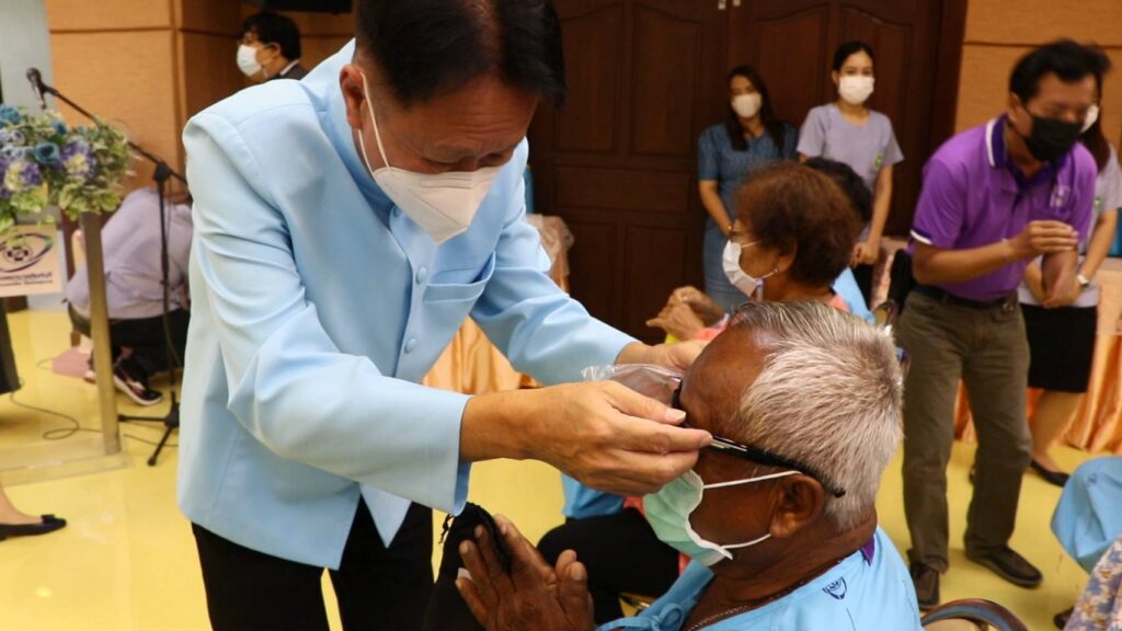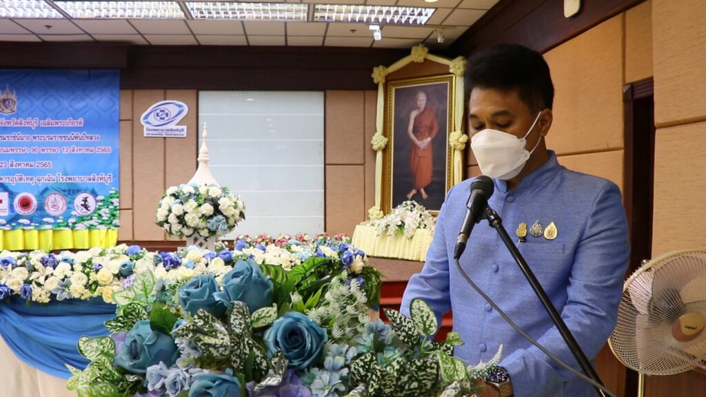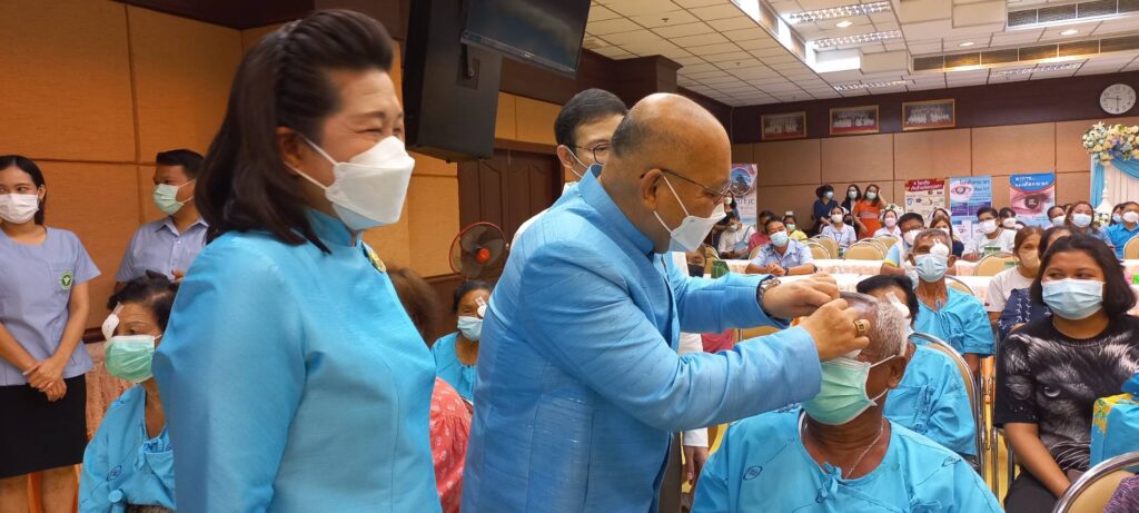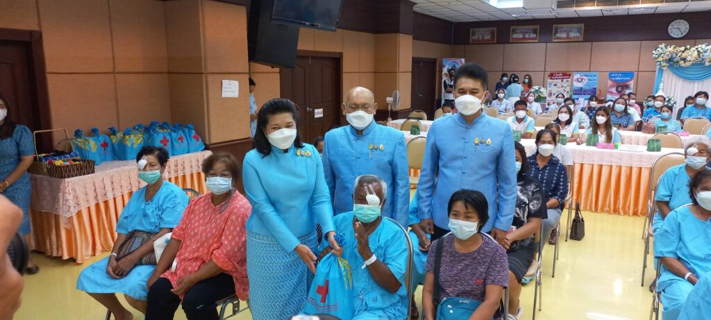 วันที่ 23 สิงหาคม 2565 เวลา 09.00 น.นายชัยชาญ สิทธิวิรัชธรรม ผู้ว่าราชการจังหวัดสิงห์บุรีจัดโครงการผ่าตัดต้อกระจกเฉลิมพระเกียรติสมเด็จพระนางเจ้าสิริกิติ์ พระบรมราชินีนาถ พระบรมราชชนนีพันปีหลวง เนื่องในโอกาสมหามงคลเฉลิมพระชนมพรรษา 90 พรรษา 12 สิงหาคม 2565 ณ ห้องประชุมอัมพวัน ชั้น 6 ตึกอุบัติเหตุฉุกเฉิน โรงพยาบาลสิงห์บุรี โดยมี นางจิตติวรรณ สิทธิวิรัชธรรม นายกเหล่ากาชาดจังหวัดสิงห์บุรี นพ.โชคชัย สาครพาณิชนายแพทย์สาธารณสุขจังหวัดสิงห์บุรี หัวหน้าส่วนราชการ หมอกับพยาบาล โรงพยาบาลสิงห์บุรี และประชาชนส่วมใส่เสื้อสีฟ้า ร่วมกิจกรรมเฉลิมพระเกียรติฯเนื่องจากจังหวัดสิงห์บุรีมีแนวโน้มพบอัตราตาบอดจากภาวะต้อกระจกเพิ่มขึ้นโดยมีสาเหตุจากการเป็นสังคมผู้สูงอายุและความยากไร้ ไม่สะดวกในการเดินทาง ทำให้ผู้ป่วยไม่ได้เข้ารับการรักษาที่ทันเวลาอันส่งผลต่อการมองเห็นและดำรงชิวิตและคุณภาพชีวิตที่แย่ลง โอกาสนี้ ผู้ว่าราชการจังหวัดสิงห์บุรีพร้อมนายกเหล่ากาชาดจังหวัดสิงห์บุรี ได้เดินเยี่ยมให้กำลังแก่ผู้ป่วยที่ผ่าตัดต้อกระจก เปิดตาและมอบของเยี่ยมแห่ผู้ป่วย และนายวิจิตร เลิศไพบูลย์วงศ์ประธานสภาอุตสาหกรรมจังหวัดสิงห์บุรี พร้อมนางอรพรรณ รักถนอมนายกสโมสรโรตารีสิงห์บุรีวีรชน และคณะมอบแว่นตาดำแก่ผู้ป่วยที่ผ่าต้อกระจกไว้ป้องกันแสงแดด สร้างความปลามปลื้มใจให้ผู้ป่วยและญาติ เป็นอย่างมาก