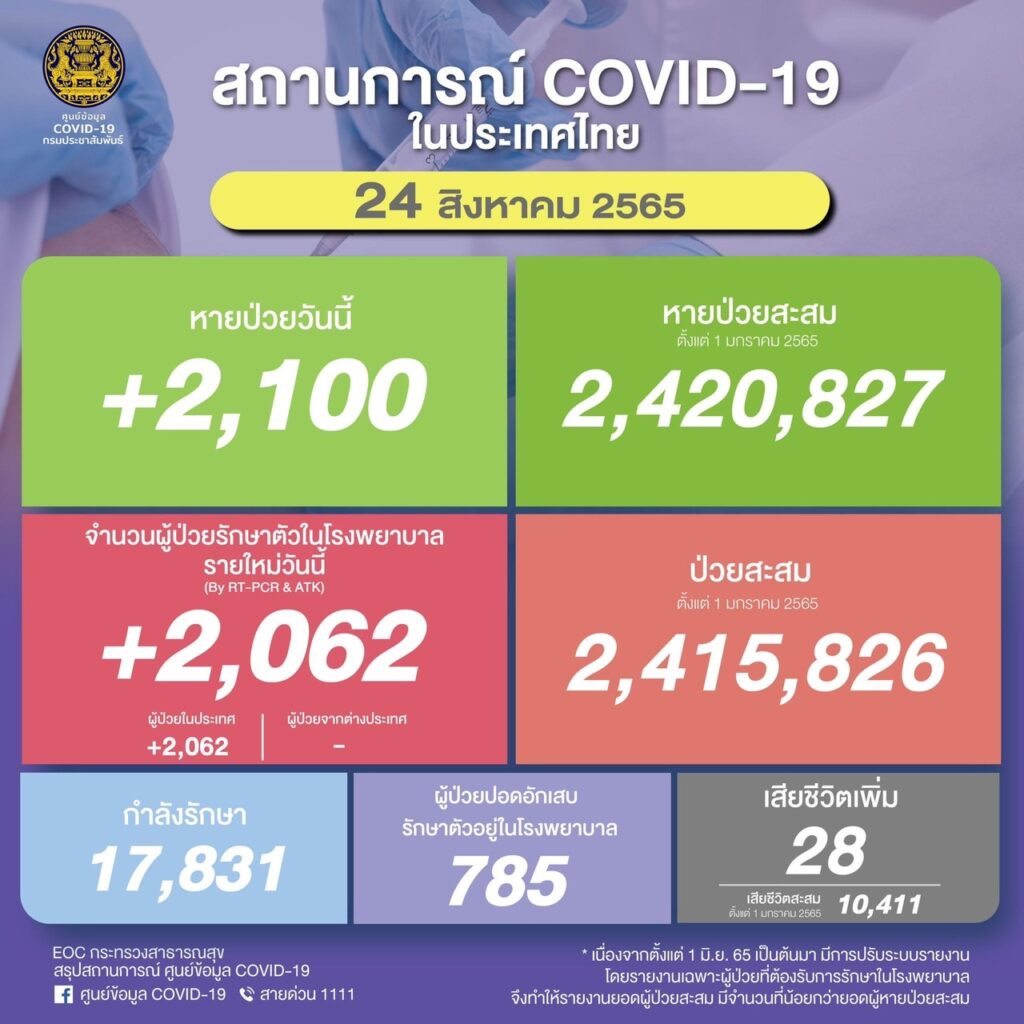 ผู้ป่วยสะสม 2,415,826 ราย (ตั้งแต่ 1 มกราคม 2565)