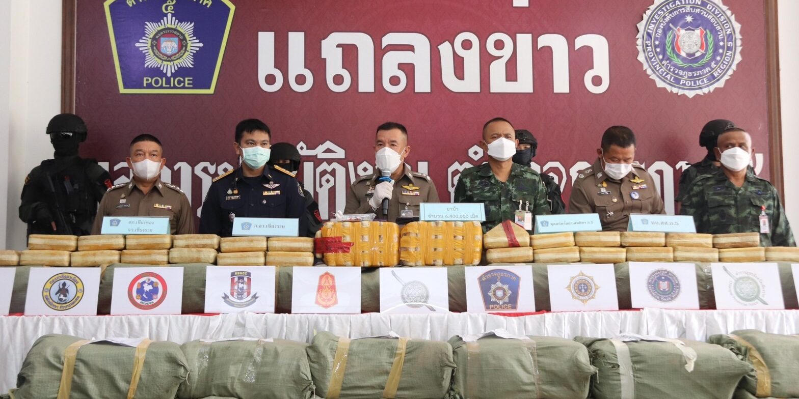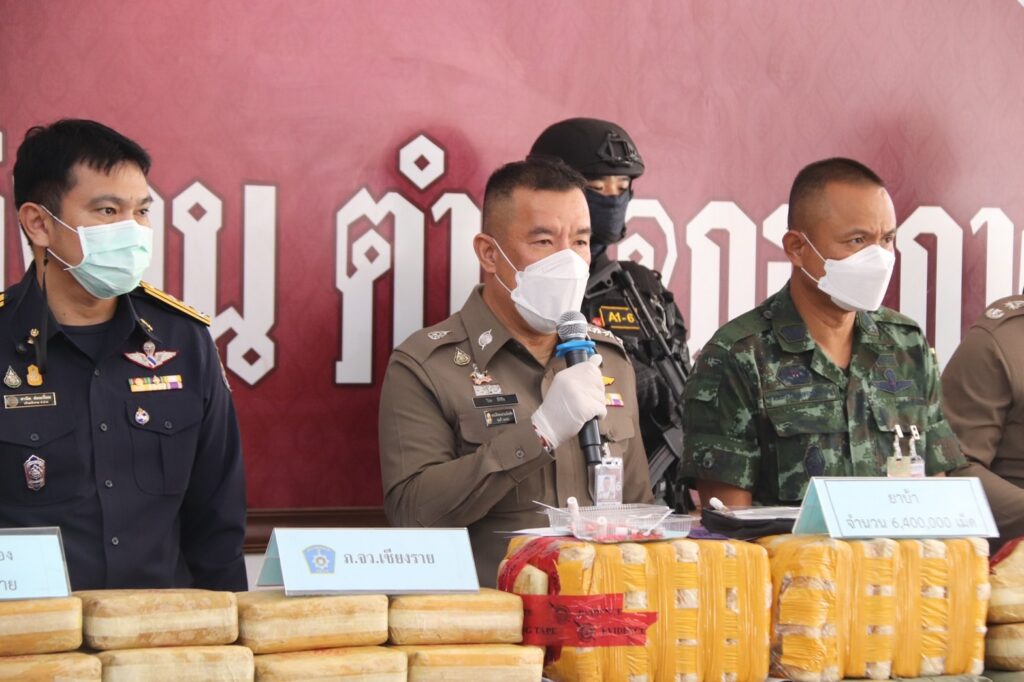วันที่ 23 ส.ค. 65 เวลา 11.30 น. ตำรวจภูธรภาค 5 โดย พล.ต.ท.ปิยะ ต๊ะวิชัย ผบช.ภ.5,พล.ต.ต.วรพงศ์ คำลือ ผบก.สส.ภ.5 ,พ.ต.อ.พงษ์สวัสดิ์ ไชยบาล รอง ผบก.ภ.จว.เชียงราย, พ.อ.ชายแดน กฤษณสุวรรณ เสธ.ศป.บส.ชน, นายศานิต อ่อนเปี่ยม นักสืบสวนสอบสวนชำนาญการพิเศษ ได้ร่วมกันแถลงผลการตรวจยึดยาเสพติดรายสำคัญ ยาบ้า 6.4 ล้านเม็ด เมื่อวันที่ 21 ส.ค. 65 เวลา 05.00 น. โดย ตรวจยึดที่บริเวณฝ่ายส่งน้ำและบำรุงรักษาที่ 3 โครงการชลประทานที่ 2 ม.5 (บ้านแพน) ต.สถาน อ.เชียงของ จ.เชียงราย