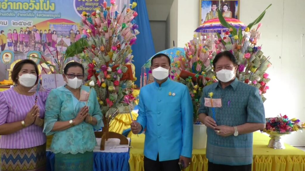 โดยมี พระครูกิตติพัชโรภาส เจ้าคณะอำเภอ เป็นประธานฝ่ายสงฆ์ มีนายณัฐพัชร์ ภัทรพิศิษฐ์ ปลัดอาวุโส อำเภอวังโป่ง พ.ต.อ.นเรศ พูลหน่าย ผกก.สภ.วังโป่ง และ หัวหน้าส่วนราชการ ผู้บริหารองค์กรปกครองส่วนท้องถิ่นทุกแห่ง หัวหน้าหน่วยงานรัฐวิสาหกิจ ผู้แทนผู้อำนวยการสถานศึกษา ข้าราชการ เจ้าหน้าที่ อส. กำนัน ผู้ใหญ่บ้านฯลฯ ภาคเอกชน ประชาชนอำเภอวังโป่ง เข้าร่วมพิธีทอดผ้าป่าการกุศลในครั้งนี้