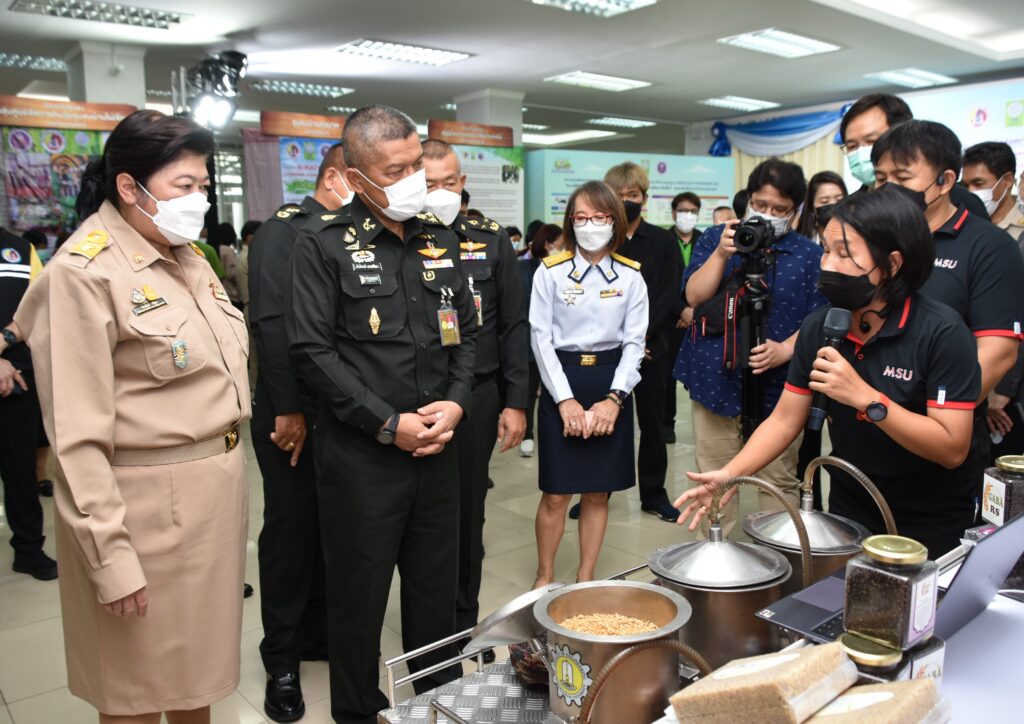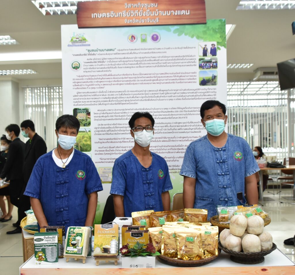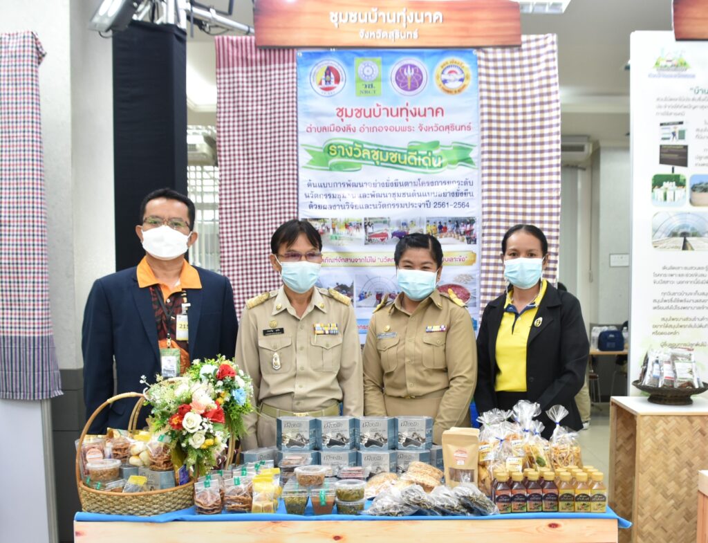 สำหรับการลงนามบันทึกข้อตกลงในครั้งนี้เป็นโครงการต่อเนื่องจากปี 2562 ซึ่งจะครบกำหนดสิ้นสุดสัญญาในวันที่ 27 ส.ค.65 ที่จะถึงนี้ โดยการดำเนินงานที่ผ่านมาได้มีการนำผลงานวิจัยและเทคโนโลยีต้นแบบเข้าไปแก้ไขปัญหาให้กับชุมชนในพื้นที่เป้าหมาย จนสามารถพัฒนาต่อยอดเป็นผลิตภัณฑ์ชุมชน สร้างอาชีพ สร้างรายได้ให้กับคนในพื้นที่ได้อย่างเป็นรูปธรรม ภายในงานมีการจัดนิทรรศการแสดงผลงานวิจัยและนวัตกรรม จำหน่ายสินค้าเกษตรอินทรีย์ท้องถิ่น พร้อมด้วยพิธีมอบรางวัลให้กับชุมชนต้นแบบที่บรรลุเป้าหมายการพัฒนาอย่างยั่งยืน จำนวน 7 ชุมชน รางวัลชุมชนดีเด่น ได้แก่ พาราโบลาโดม จากวิสาหกิจชุมชนสมุนไพรเกษตรอินทรีย์บ้านดงบัง,นวัตกรรมเครื่องผ่าไม้และจักตอกแบบเลาะข้อ จากชุมชนบ้านทุ่งนาค จ.สุรินทร์,เครื่องอบแห้งอินฟราเรดเทคโนโลยีการผลิตข้าวฮางงอก จากวิสาหกิจชุมชนกลุ่มศูนย์จัดการดินปุ๋ยชุมชนบ้านไผ่เขียว จ.อุตรดิตถ์ และ นวัตกรรมระบบผลิตผักและปุ๋ยหมัก จากชุมชนบ้านโหนดหมู่ จ.พัทลุง ส่วนรางวัลชมเชย ได้แก่ เครื่องสูบน้ำพลังงานแสงอาทิตย์ จากวิสาหกิจชุมชนเกษตรอินทรีย์วิถียั่งยืนบ้านบางแตน จ.ปราจีนบุรี,ระบบการผลิตผักและข้าวโพดฝักสด จากกลุ่มเกษตรกรสมาชิกศูนย์ส่งเสริมการเกษตรครบวงจรตามแนวเศรษฐกิจพอเพียง จ.สระแก้ว และเครื่องสูบน้ำพลังงานแสงอาทิตย์ จากชุมชนบ้านวังช้าง จ.ชุมพร