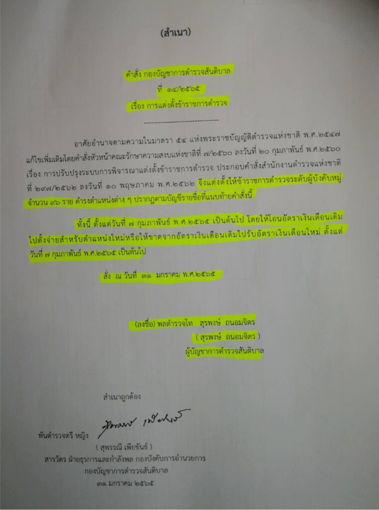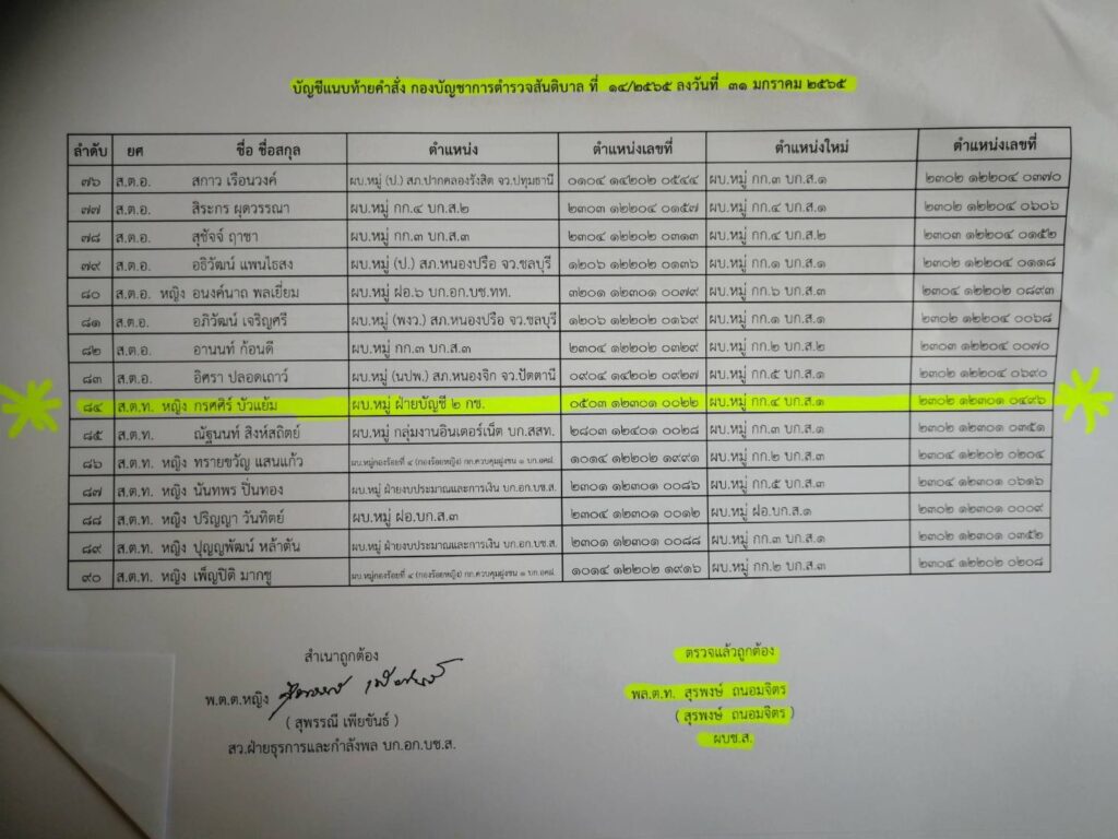 - การออกคำสั่งให้สิบตำรวจโทหญิงช่วยงานที่กองอำนวยการรักษาความมั่นคงภายในภาค 4 ส่วนหน้า โดยมีการเบิกเบี้ยเลี้ยงและได้วันเพิ่มวันทวีคูณทั้งที่ไม่ได้ไปปฏิบัติงานในพื้นที่ชายแดนภาคใต้หรือไม่