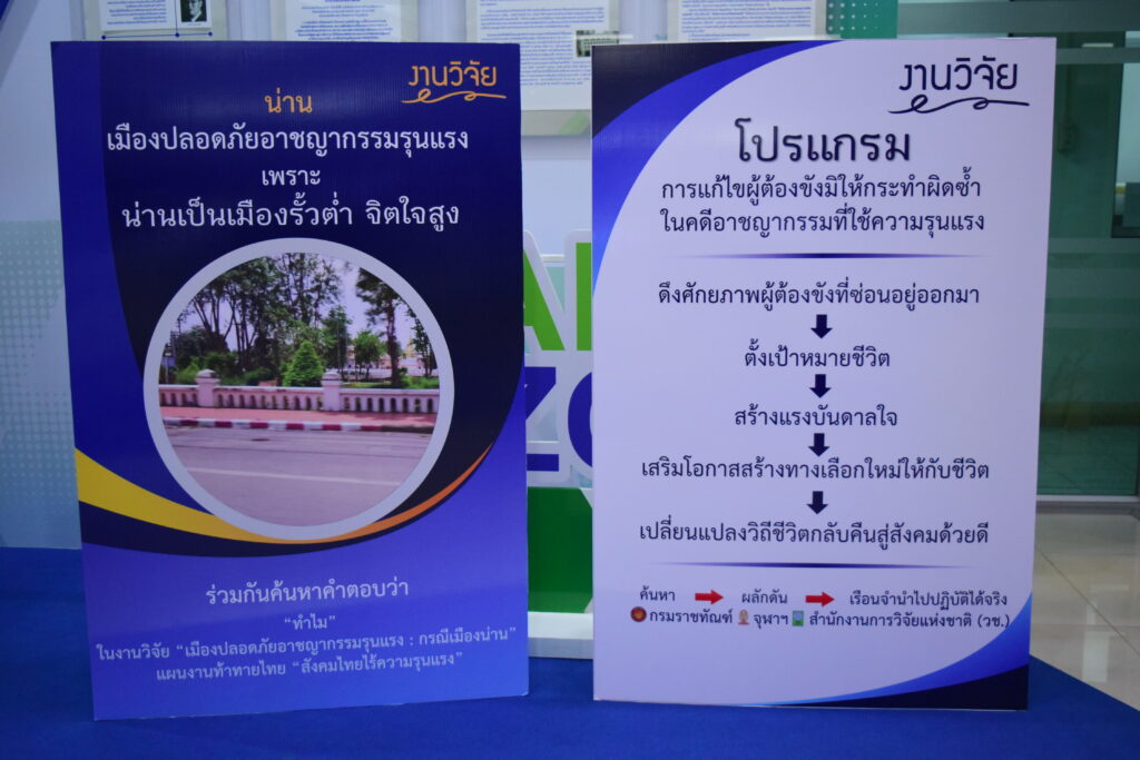 โดยผลงานวิจัยที่สามารถตอบโจทย์ในการลดความรุนแรงในสังคม ได้แก่ 1.แผนที่ความรุนแรงของประเทศไทย เพื่อนำไปสู่การกำหนดนโยบายและมาตรการ ในการป้องกันและแก้ไขปัญหาความรุนแรงในสังคมไทย