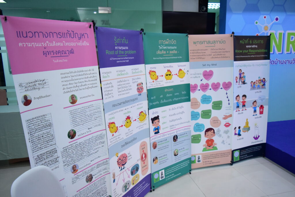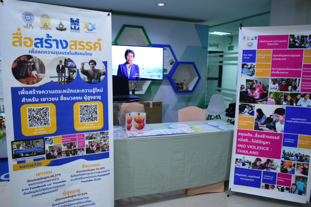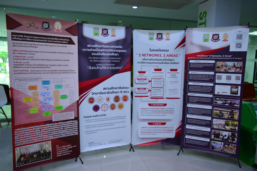 ทั้งนี้ ภายในงานสัมมนาวิชาการฯ ยังมีการจัดแสดงผลงานวิจัยและนวัตกรรมที่นำไปช่วยป้องกันและแก้ไขปัญหาการใช้ความรุนแรงในสังคม อาทิ นิทรรศการโครงการฐานข้อมูลความรุนแรง นิทรรศการป้องกันการฆ่าตัวตาย และนิทรรศการป้องกันการทะเลาะวิวาทของนักเรียน นักศึกษา ซึ่งผลงานวิจัยเป็นผลงานที่ได้รับทุนสนับสนุนจาก (วช.) ภายใต้โครงการท้ายไทย : สังคมไทยไร้ความรุนแรง ปีที่ 2