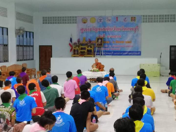 วันศุกร์ที่ ๒๖ สิงหาคม ๒๕๖๕ เวลา ๑๘.๓๐ – ๒๐.๓๐ นาฬิกา กรมคุมประพฤติ กระทรวงยุติธรรม สำนักงานคุมประพฤติจังหวัดลพบุรี โดยนางสาวอติกาญจน์ ตันสาโรจน์วนิช พนักงานคุมประพฤติชำนาญการพิเศษ รักษาราชการแทน ผู้อำนวยการสำนักงานคุมประพฤติจังหวัดลพบุรี และผู้อำนวยการค่ายศูนย์ขวัญแผ่นดินจังหวัดลพบุรี มอบหมายให้ทีมวิทยากรประจำค่ายศูนย์ขวัญแผ่นดินจังหวัดลพบุรี จัดกิจกรรมอบรมความรู้แก่ผู้เข้ารับการอบรมตามโครงการแก้ไขปัญหาผู้เสพและผู้ติดยาเสพติด “ในรูปแบบค่ายศูนย์ขวัญแผ่นดินจังหวัดลพบุรี” รุ่นที่ ๔ ประจำปีงบประมาณ ๒๕๖๕ ในหัวข้อเรื่อง “ธรรมะกับชีวิต” บรรยายธรรมโดยพระภาวนาวชิรญาณ (อริยะ วรปญโญ) เจ้าอาวาสวัดนิคมสามัคคีชัย(บ่อ ๖) มีผู้เข้าร่วมโครงการฯ เข้ารับการอบรม จำนวน ๖๖ คน ณ วัดนิคมสามัคคีชัย (บ่อ ๖) ตำบลนิคมสร้างตนเอง อำเภอเมืองลพบุรี จังหวัดลพบุรี