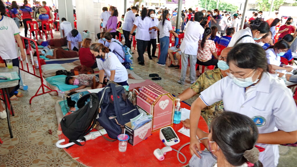 เมื่อเวลา 11.00 น. วันที่ 28 สิงหาคม 2565 ที่สวนสาธารณะหมู่บ้านพฤกษาเกสร 23 ตำบลคลองสาม อำเภอคลองหลวง จังหวัดปทุมธานี นายยุทธศักดิ์ ชูประเสริฐ (จ่ายุทธ) ที่ปรึกษาพิเศษนายกองค์การบริหารส่วนจังหวัดปทุมธานี ว่าที่ผู้สมัคร ส.ส.พรรคเพื่อไทย และทีมงาน ลงพื้นที่มอบข้าวสารถุงละ 5 กิโลกรัมจำนวน 100 ถุง ให้ผู้นำชุมชนเพื่อส่งมอบให้กับผู้พิการ ผู้ป่วย ผู้ด้อยโอกาส ภายในงาน อบต.คลองสาม ออกหน่วยเคลื่อนที่บริการประชาชน จัดโดย ดร.วิระศักดิ์ ฮาดดา นายก อบต.คลองสาม และทีมงาน อบต.คลองสาม มีประชาชนในพื้นที่มาร่วมเกือบ 1,000 คน
