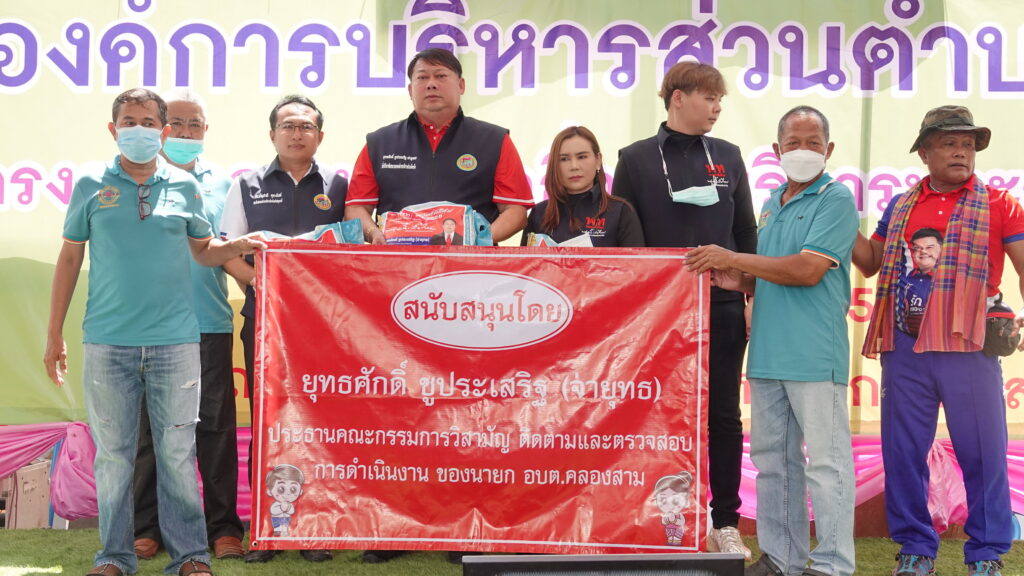 นายยุทธศักดิ์ ชูประเสริฐ (จ่ายุทธ) ที่ปรึกษาพิเศษนายกองค์การบริหารส่วนจังหวัดปทุมธานี ว่าที่ผู้สมัคร ส.ส.พรรคเพื่อไทย กล่าวว่า ที่ผ่านมาผมได้ลงพื้นที่ร่วมกับ พล.ต.ท.คำรณวิทย์ ธูปกระจ่าง นายก อบจ.ปทุมธานีมานานกว่า 9 เดือน โดยเฉพาะในส่วนของพื้นที่คลองสามได้ทำงานร่วมกับ ดร.วิระศักดิ์ ฮาดดา นายก อบต.คลองสาม เพื่อนำรถดูดเลนเพื่อระบายน้ำฝนลดความเดือดร้อนของประชาชน จะเห็นว่าเมื่อฝนตกลงมาจะไม่มีน้ำท่วมขังภายในหมู่บ้านแลบะชุมชนคลองสามแล้ว ชาวบ้านเริ่มมีความสุข เมื่อมีงาน อบต.คลองสามเคลื่อนที่บริการประชาชน ผมและทีมงานจึงได้มาร่วมกิจกรรมเพื่อลดความลำบากของประชาชน ทำสิ่งของ น้ำดื่ม ไอศกรีม และข้าวสารมามอบให้เพื่อเป็นขวัญกำลังใจ หากทาง อบต.จัดช่วยเหลือชาวบ้านแบบนี้อีก เราและทีมงานก็จะมาช่วยเหลือสนับสนุนทุกครั้ง