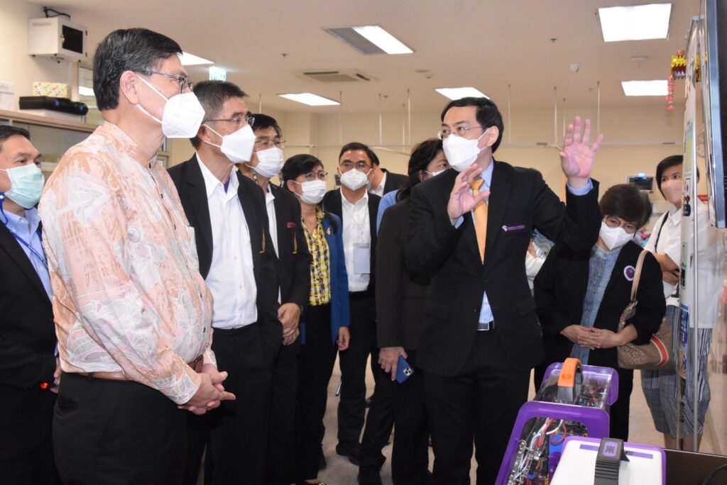 วันที่ 27 สิงหาคม 2565 : ศาสตราจารย์พิเศษ ดร.เอนก เหล่าธรรมทัศน์ รัฐมนตรีว่าการกระทรวงการอุดมศึกษา วิทยาศาสตร์ วิจัยและนวัตกรรม (อว.) ลงพื้นที่เยี่ยมชมผลงานความร่วมมือในการขยายผลนวัตกรรมดิจิทัลสนับสนุนการบริหารจัดการโรคระบาด ภายใต้โปรแกรมยุติโรคระบาดด้วยนวัตกรรม (EPI) โดยมี นายแพทย์สุวิทย์ วิบุลผลประเสริฐ ประธานกรรมการบริหารศูนย์ความเป็นเลิศด้านชีววิทยาศาสตร์ (องค์การมหาชน),ดร.วิภารัตน์ ดีอ่อง ผู้อำนวยการสำนักงานการวิจัยแห่งชาติ (วช.),ดร.ชัยรัตน์ อุทัยพิบูลย์ รักษาราชการผู้อำนวยการศูนย์ความเป็นเลิศด้านชีววิทยาศาสตร์ (องค์การมหาชน),รองศาสตราจารย์ ดร.วินิตา บุญโยดม รักษาราชการแทนรองอธิการบดีมหาวิทยาลัยเชียงใหม่,ผู้ช่วยศาสตราจารย์ ดร.วีระศักดิ์ พุทธาศรี รองเลขาธิการคณะกรรมการสุขภาพแห่งชาติ,นายแพทย์ทศเทพ บุญทอง ผู้อำนวยการสำนักงานเขตสุขภาพที่ 1,นายแพทย์วรัญญู จำนงประสาทพร รองนายแพทย์สาธารณสุขจังหวัดเชียงใหม่,นายภาคภูมิ ธาวงค์ รองนายแพทย์สาธารสุขจังหวัดเชียงใหม่,ศาสตราจารย์เกียรติคุณ นายแพทย์สุวัฒน์ จริยาเลิศศักดิ์ คณบดีคณะสาธารณสุขศาสตร์ มหาวิทยาลัยเชียงใหม่ และ นายแพทย์วรวุฒิ โฆวัชรกุล ผู้ช่วยนายแพทย์สาธารสุขจังหวัดเชียงใหม่ ด้านการจัดการเทคโนโลยีและสารสนเทศ ให้การต้อนรับ ณ โรงพยาบาลสันทราย จังหวัดเชียงใหม่