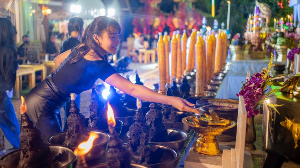 ภายในงานมีศิลปิน ดารา นักร้อง ร่วมงานอย่างหนาแน่น อาทิ ฝน-ธนสุทธร, เจเน็ตเขียว, ฌาร์ม โอสถานนท์, การ์ตูน-ณัฐฌา บุญปอง, ครีมมี่ พลอยปภัส, แนนซี่ ท็อปไลน์, แก้วปิ้งไก่, ดร.วโรดม ศิริสุข, เรย์ อิสริยะ อภิชัย อดีตมิสไทยแลนด์เวิร์ล และการแสดงถวายเสียงโดยศิลปินแก้วเพทาย รำถวายโดย ธัญรดา นาฏนาคี และ ลาล่า อาร์สยาม ที่มาฟ้อนเทียนอย่างสวยงาม