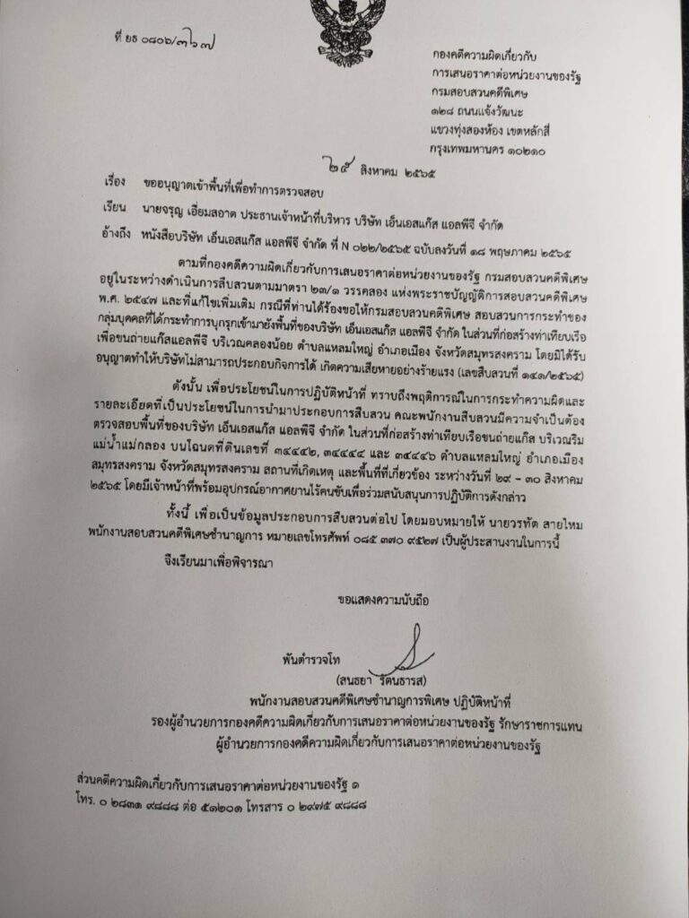 เจ้าหน้าที่จากกรมสอบสวนคดีพิเศษ หรือ ดีเอสไอ เข้าตรวจสอบคลังแก๊ส เอ็นเอสแก๊ส แอลพีจี มูลค่ากว่า 1,000 ล้านบาท ซึ่งตั้งอยู่ในพื้นที่ จังหวัดสมุทรสงคราม หลังจากนายจรูญ เอี่ยมสะอาด ประธานเจ้าหน้าที่บริหาร บริษัท เอ็นเอสแก๊ส แอลพีจี จำกัด ได้ยื่นหนังสือร้องเรียนเพื่อขอความเป็นธรรมกับ ดีเอสไอ ว่า คลังแก๊สนั้น ถูกกรมเจ้าท่า เพิกถอนใบอนุญาตท่าเรือ
