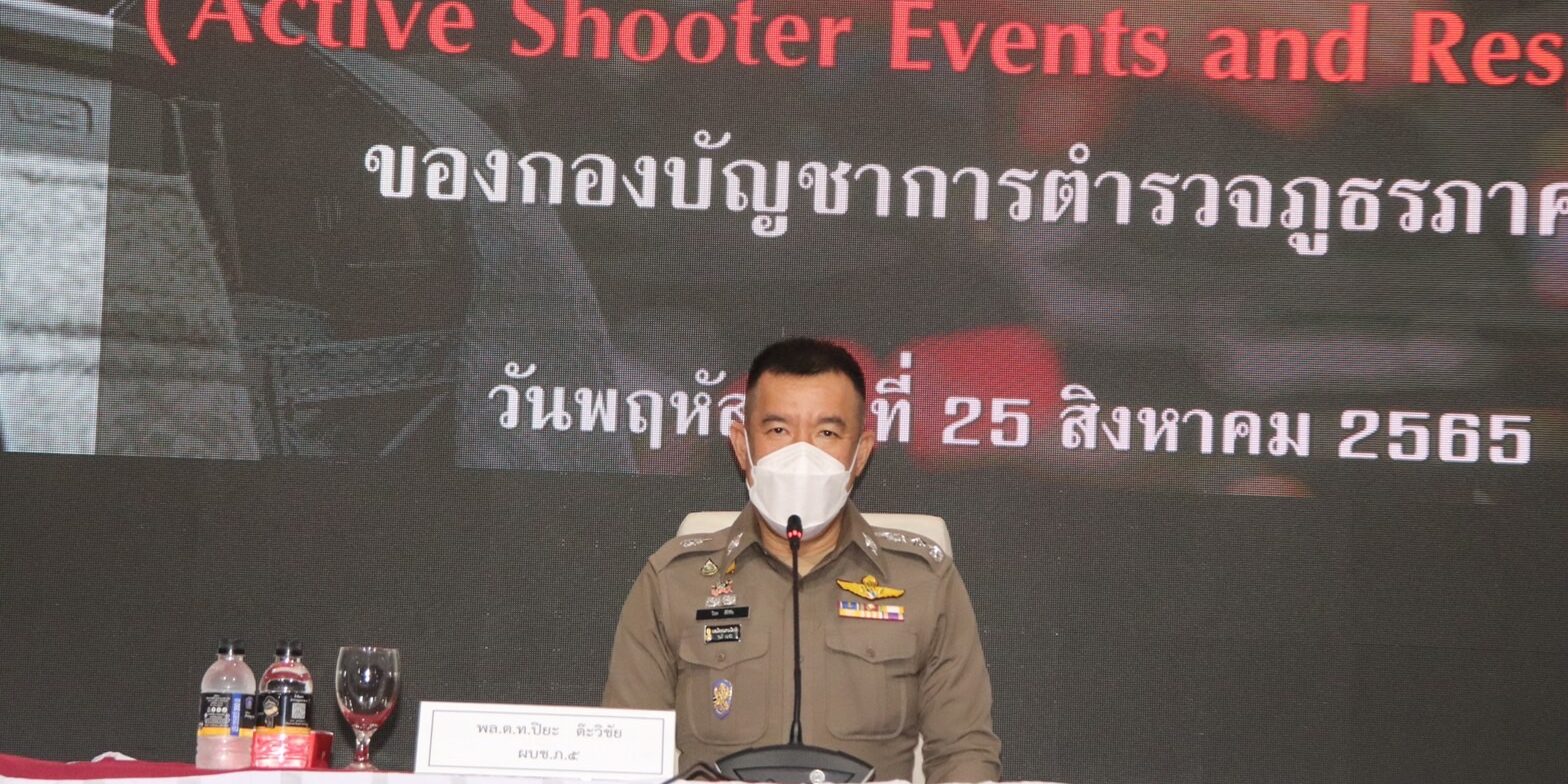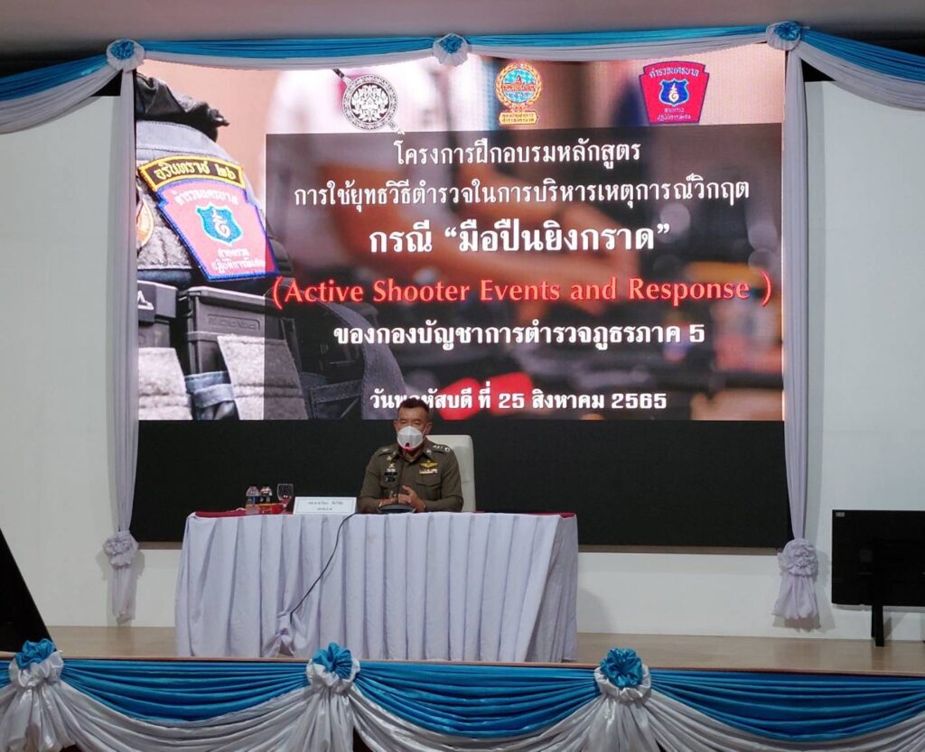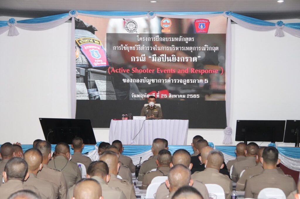 พล.ต.ท.ปิยะ ต๊ะวิชัย ผบช.ภ.5 เป็นประธานในพิธีเปิดการอบรมหลักสูตร การใช้ยุทธวิธีตำรวจในการบริหารเหตุการณ์วิกฤต กรณี “มือปืนยิงกราด” (Active Shooter Events and Response) โดยมี พ.ต.อ.จตุพล พลภักดี ผกก.ฝ่ายปกครองและการฝึก ศฝร.บช.น. และคณะเป็นวิทยากร และผู้เข้ารับการอบรมประกอบด้วย หน.สภ.ฯ ในสังกัด ภ.5 ทั้ง 159 สถานี เพื่อนำความรู้ไปถ่ายทอดต่อยังผู้ใต้บังคับบัญชา ให้มีความพร้อมในการปฏิบัติหน้าที่เมื่อมีเหตุวิกฤต ณ ห้องประชุมคุ้มแก้ว ขวัญดาว ตำรวจภูธรภาค 5 อ.เมือง จ.เชียงใหม่