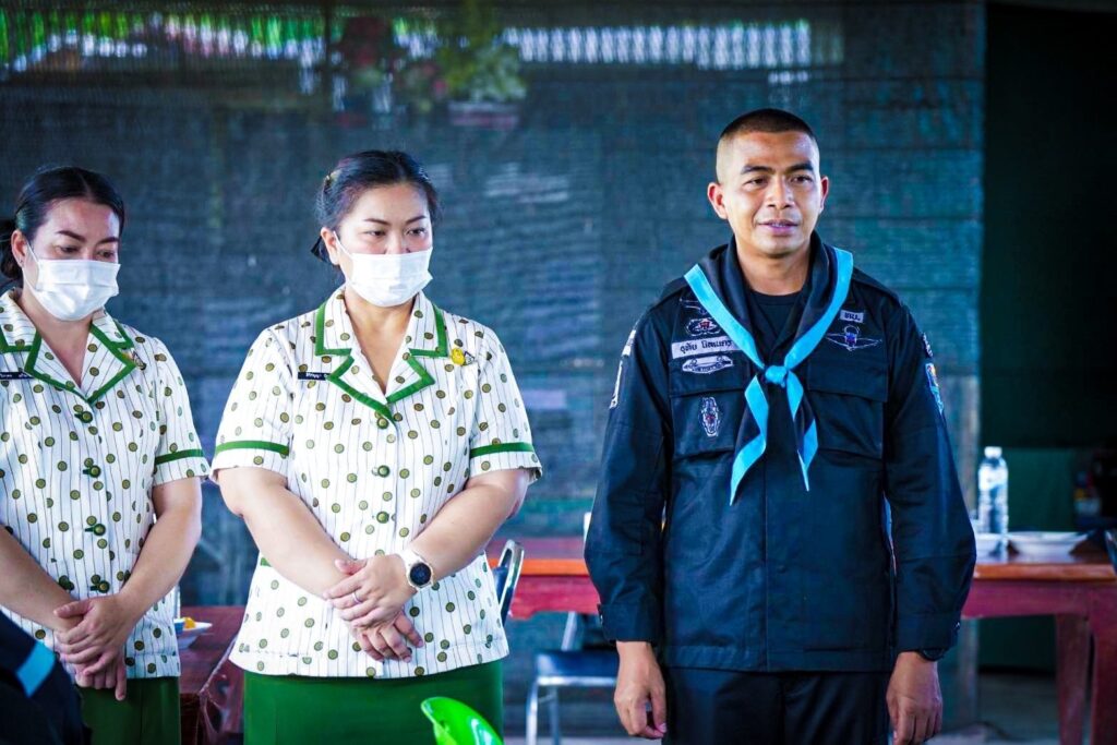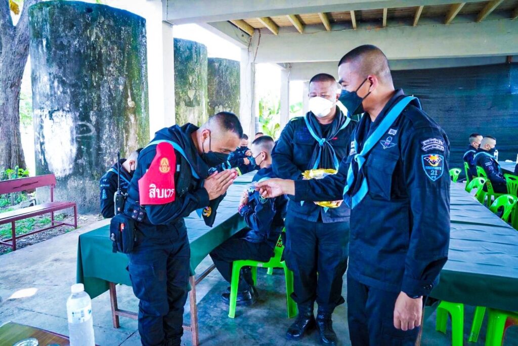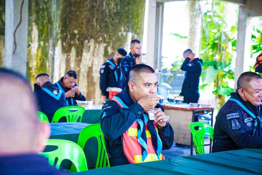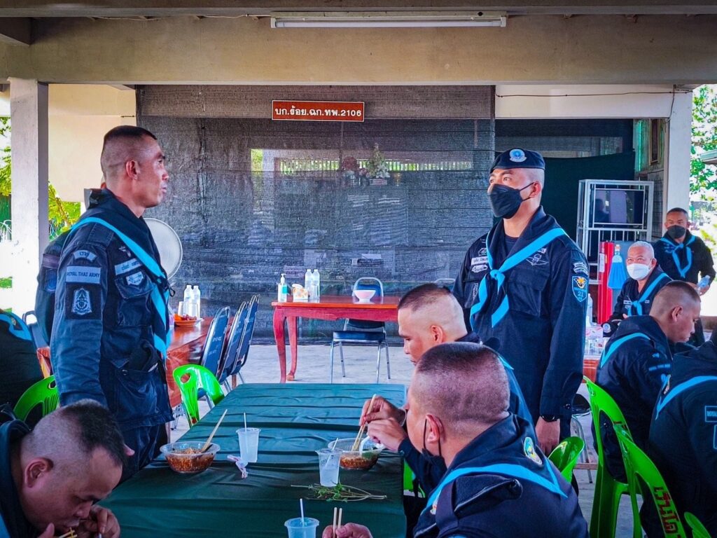 วันที่ 30 ส.ค.2565 ผู้สื่อข่าวรายงานว่า กองกำลังสุรศักดิ์มนตรี โดย พันเอก อุทัย นิลเนตร ผู้บังคับการกรมทหารพรานที่ 21/ผู้บังคับหน่วยเฉพาะกิจกรมทหารพรานที่ 21 และคุณสิริกัญญา นิลเนตร ประธานสมาคมแม่บ้านทหารบก สาขา กรมทหารพรานที่ 21 พร้อมสมาชิกแม่บ้านของหน่วย ตรวจเยี่ยมความเป็นอยู่ และการปฏิบัติงาน เน้นย้ำนโยบาย หน่วยทหารสีขาวปลอดยาเสพติด ,การรักษาระเบียบวินัย และการปฏิบัติภารกิจให้เกิดความเชื่อมั่นต่อประชาชนในพื้นที่ รวมไปถึงการสอบถามปัญหาข้อขัดข้องหรืออุปสรรคในการปฏิบัติงาน แนะนำแนวทางแก้ไขปัญหาต่างๆ ทั้งยังได้มอบน้ำใจจัดเลี้ยงมื้อพิเศษ เสิร์ฟก๋วยเตี๋ยวรสเด็ด ไอศกรีมกะทิมะพร้าว พร้อมกับมอบพระเครื่องเพื่อความเป็นศริมงคล ถึงมือกำลังพลเสริมสร้างขวัญกำลังใจ เข้าถึงหัวใจกำลังพล “เมื่อท้องอิ่มนอนอุ่นงานก็เดิน” ตอบแทนความเสียสละของกำลังพลป้องกันชายแดนที่ปฏิบัติงานได้อย่างมีประสิทธิภาพ สร้างความเชื่อมั่นให้กับผู้บังคับบัญชา รวมถึงสร้างศรัทธาให้กับพี่น้องประชาชนตามแนวชายแดนแม่น้ำโขงได้อุ่นใจ รู้สึกปลอดภัยในชีวิตและทรัพย์สิน แสดงให้เห็นถึงความใส่ใจห่วงใยของผู้บังคับบัญชาที่มีต่อผู้ใต้บังคับบัญชาในการปฏิบัติงานพื้นที่ชายแดนแม่น้ำโขงต่อไป ณ ฐานปฏิบัติการกองร้อยทหารพรานที่ 2106 บ.เวินโดน ม.8 ต.ปากคาด อ.ปากคาด จ.บึงกาฬ