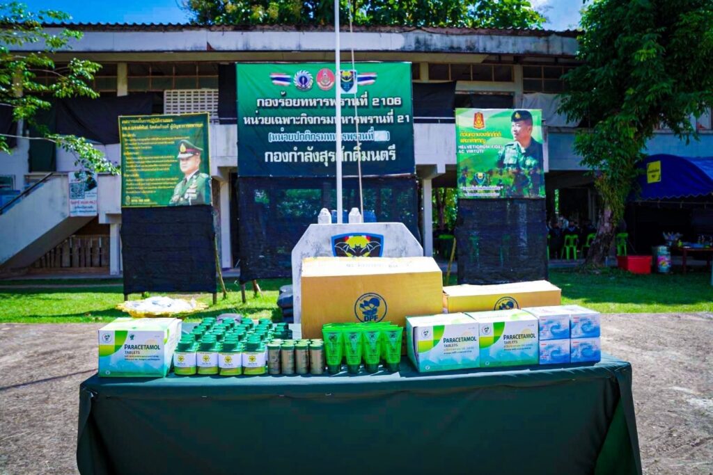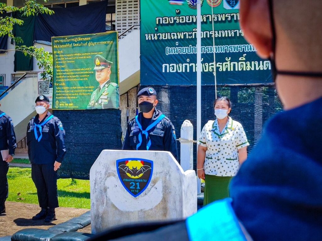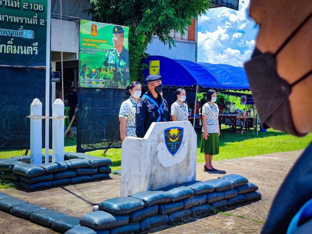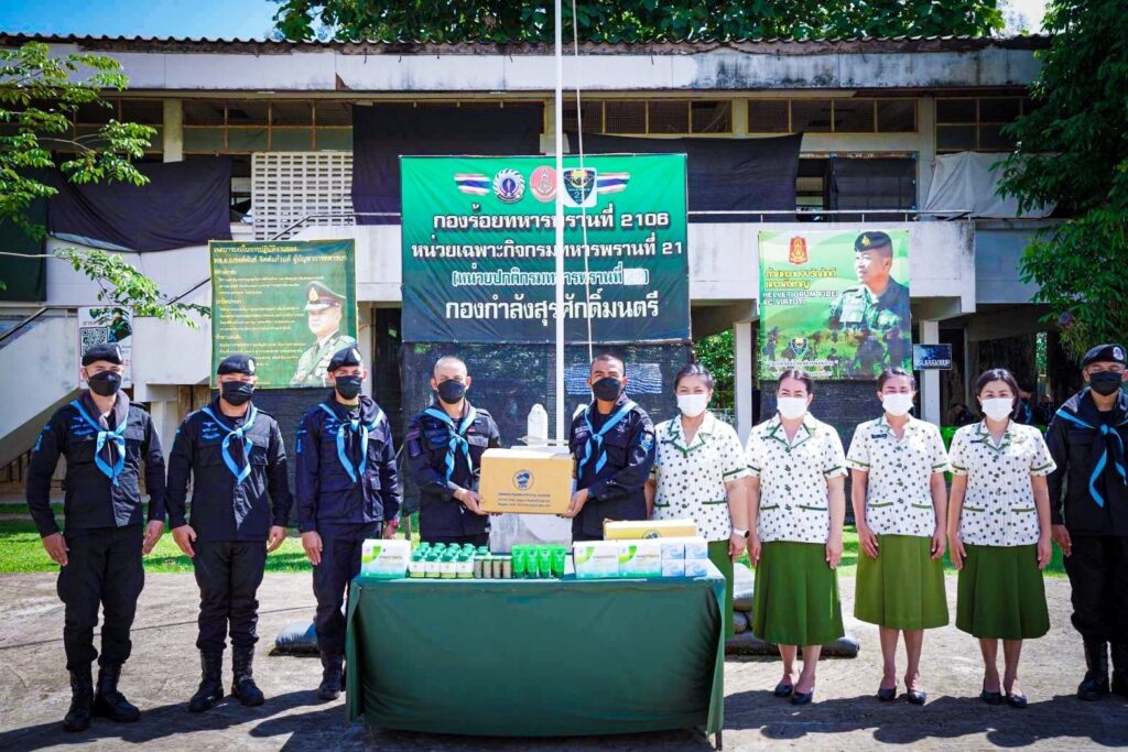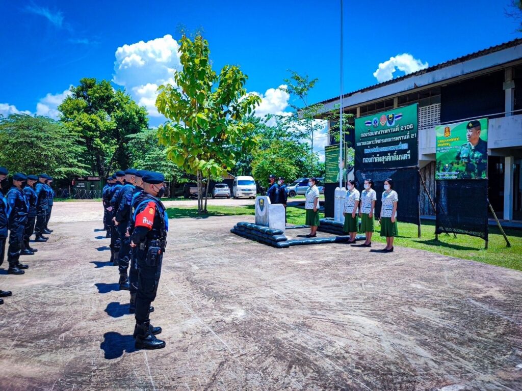 วันที่ 30 ส.ค.2565 ผู้สื่อข่าวรายงานว่า กองกำลังสุรศักดิ์มนตรี โดย พันเอก อุทัย นิลเนตร ผู้บังคับการกรมทหารพรานที่ 21/ผู้บังคับหน่วยเฉพาะกิจกรมทหารพรานที่ 21 และคุณสิริกัญญา นิลเนตร ประธานสมาคมแม่บ้านทหารบก สาขา กรมทหารพรานที่ 21 พร้อมสมาชิกแม่บ้านของหน่วย ตรวจเยี่ยมให้กำลังใจ รับฟังผลการปฏิบัติงานและปัญหาข้อขัดข้องของหน่วยในห้วงที่ผ่านมา ในการปฏิบัติงานด้านการรักษาความมั่นคงในพื้นที่ตามแนวชายแดน โดยได้กำชับเน้นย้ำปฏิบัติการ “ หยุดยาเสพติดไว้ที่ชายแดน ” เพิ่มประสิทธิภาพป้องกันชายแดน จ.บึงกาฬ ตรวจสอบการกระทำผิดกฎหมาย การลักลอบนำเข้ายาเสพติด การหลบหนีเข้าออกนอกราชอาณาจักรเน้นการบูรณาการกับหน่วยงานทุกภาคส่วน เพิ่มมาตรการในการปฏิบัติจุดเฝ้าระวังช่องทางธรรมชาติ รวมถึงการเพิ่มกำลังลาดตระเวนตลอด 24 ชั่วโมง การเฝ้าระวังสถานการณ์โควิด-19 พร้อมเน้นย้ำให้กำลังพลบูรณาการกับทุกภาคส่วนในการปฏิบัติภารกิจการช่วยเหลือประชาชนทุกมิติ ในพื้นที่ชายแดน จ.บึงกาฬ ก่อนเดินทางกลับได้มอบเครื่องอุปโภค-บริโภคให้กับกำลังพล เพื่อเป็นขวัญและกำลังใจในการปฏิบัติงาน และเพื่อแสดงให้เห็นถึงความใส่ใจห่วงใยของผู้บังคับบัญชาที่มีต่อผู้ใต้บังคับบัญชาในการปฏิบัติงานพื้นที่ชายแดนแม่น้ำโขงต่อไป ณ ฐานปฏิบัติการกองร้อยทหารพรานที่ 2106 บ.เวินโดน ม.8 ต.ปากคาด อ.ปากคาด จ.บึงกาฬ