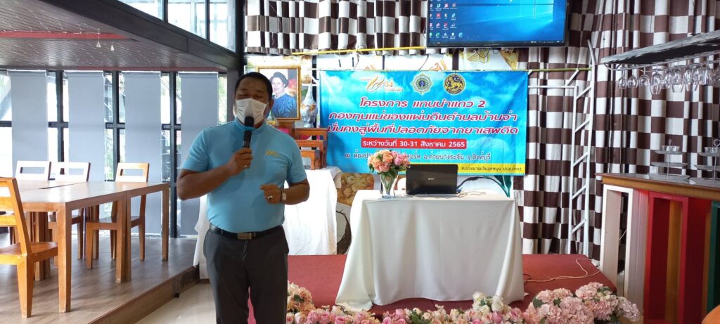 สิงหาคม 2565 เวลา09.00น.นายกฤษณะ เถื่อนจุ้ย ประธานเครือข่ายกองทุนแม่ของแผ่นดินจังหวัดสิงห์บุรี เป็นประธานพิธีเปิดโครงการ แกนนำแถว2 กองทุนแม่ของแผ่นดินตำบลบ้านจ่า มั่นคงสู่พื้นที่ปลอดภัยจากยาเสพติด อำเภอบางระจัน จังหวัดสิงห์บุรี ระหว่างวันที่ 30-31 สิงหาคม 2565 ณ ห้องประชุมมาบูน่ารีสอร์ท อำเภอค่ายบางระจัน จังหวัดสิงห์บุรี