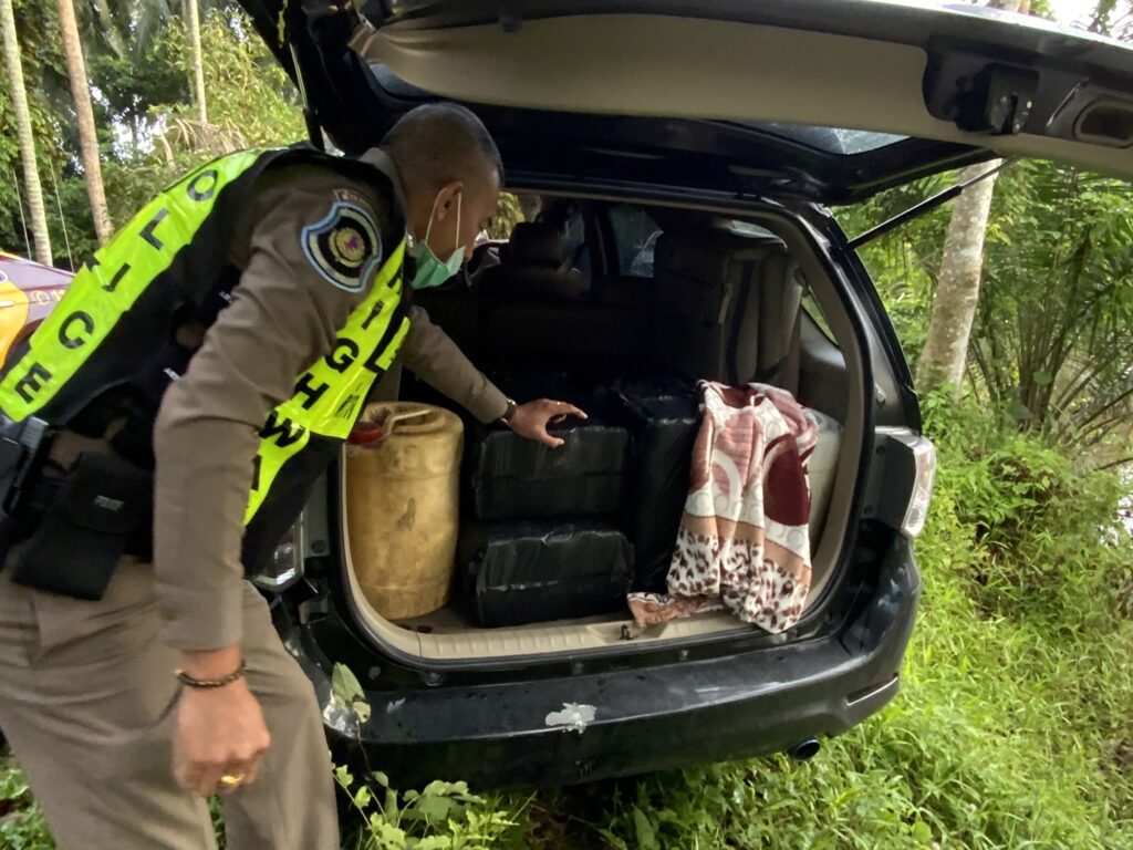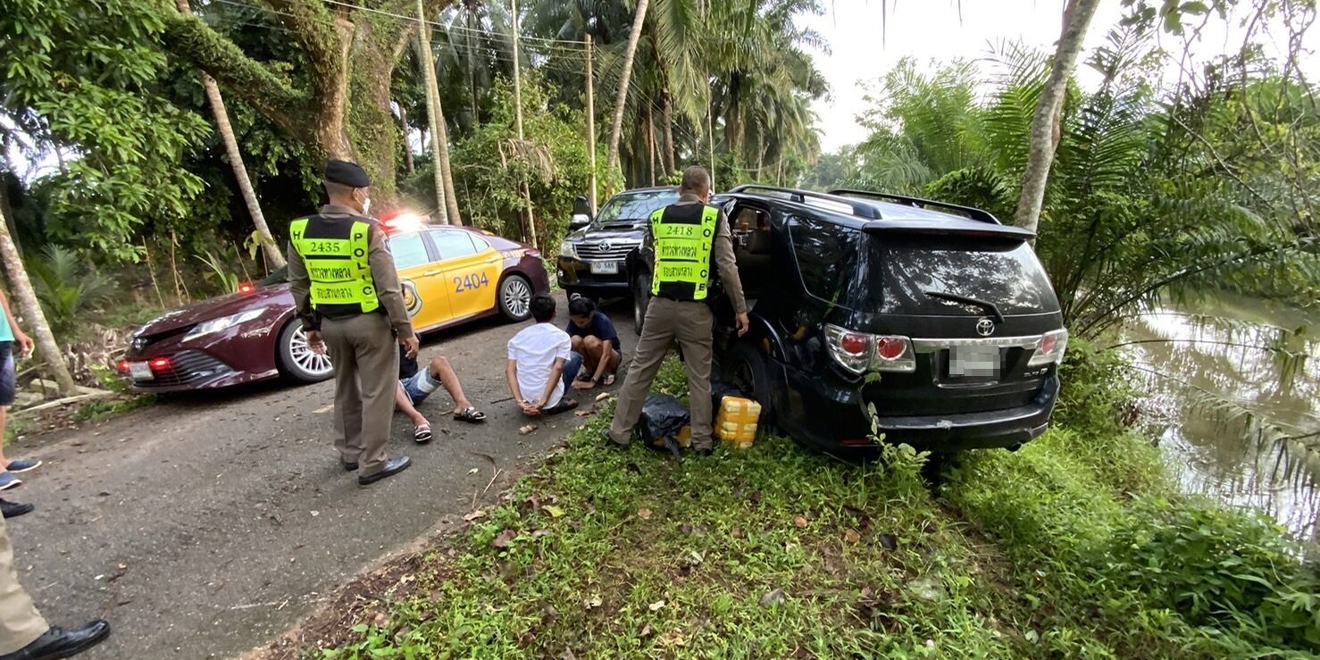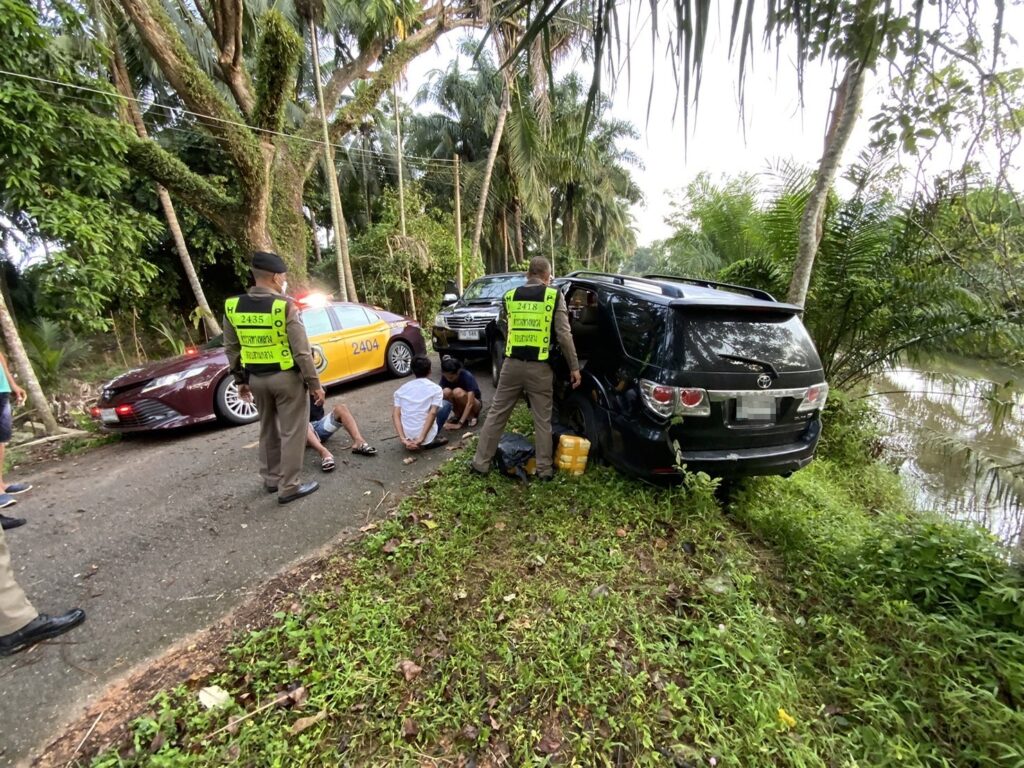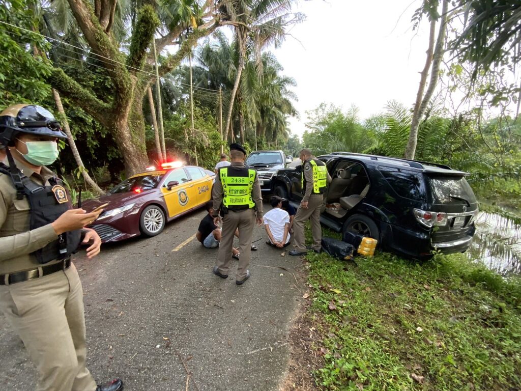 กระทั่ง รถคนร้ายมาถึงบริเวณเลียบทางรถไฟ หมู่ 1 ต.สมอทอง อ.ท่าชนะ จ.สุราษฎร์ธานี ไม่สามารถไปต่อได้จึงได้กลับรถเพื่อหลบหนีต่อ แต่รถยนต์ของ สภ.ท่าชนะ จอดขวางอยู่ คนร้ายจึงขับพุ่งชนรถ ของเจ้าหน้าที่ตำรวจได้รับความเสียหายและไม่สามารถไปต่อได้ในที่สุด เจ้าหน้าที่ตำรวจทางหลวง พร้อมด้วยเจ้าหน้าที่ตำรวจ สภ.ท่าชนะ จึงได้เข้าตรวจค้น จากการตรวจสอบภายในรถ พบ นายนริศ (ขอสงวนนามสกุล) อายุ 21 ปี ชาว อ.ไทรโยค จ.กาญจนบุรี เป็นผู้ขับขี่ มี นางสาวมุกมณี (ขอสงวนนามสกุล) อายุ 17 ปี ชาว อ.หาดใหญ่ จ.สงขลา และนายวิชิตา (ขอสงวนนามสกุล) อายุ 23 ปี ชาว อ.บางพลี จ.สมุทรปราการ นั่งโดยสารมาด้วย