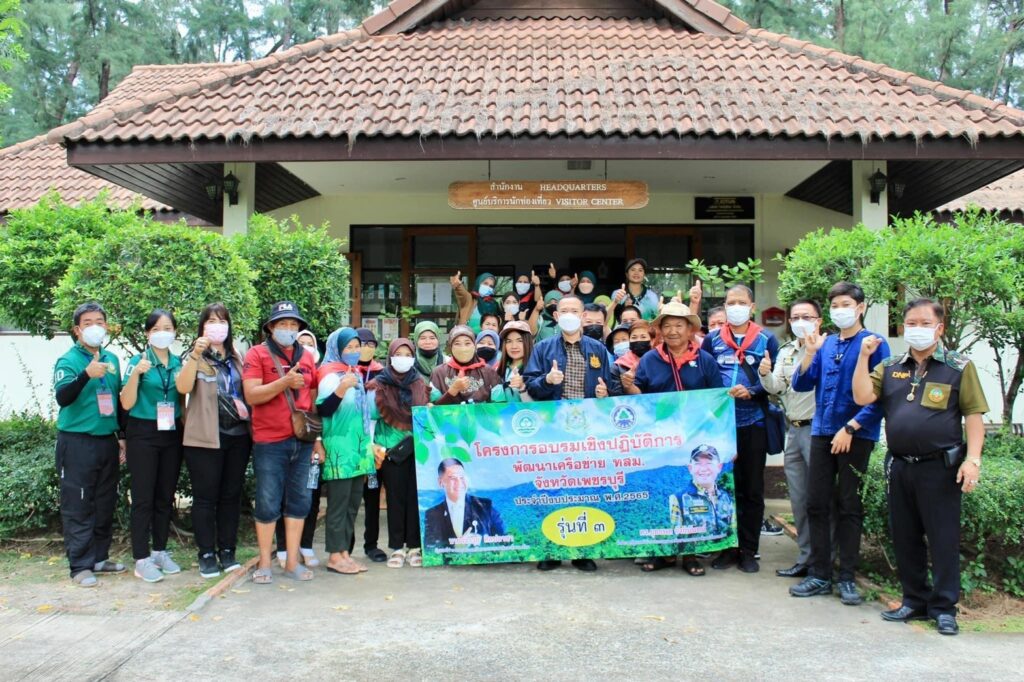 เมื่อวันที่ 31 สิงหาคม 2565 : ดร.ยุทธพล อังกินันทน์ ที่ปรึกษารัฐมนตรีว่าการกระทรวงทรัพยากรธรรมชาติ และสิ่งแวดล้อม พร้อมด้วย นายพิชัย วัชรวงษ์ไพบูลย์ ผู้อำนวยการสำนักบริหารพื้นที่อนุรักษ์ที่ 3 สาขาเพชรบุรี ลงพื้นที่ วนอุทยานปราณบุรี จังหวัดประจวบคีรีขันธ์ เพื่อตรวจเยี่ยมพร้อมมอบนโยบายให้กับเครือข่าย ทสม. จังหวัดเพชรบุรี ในโอกาสเดินทางศึกษาดูงาน ตามโครงการอบรมเชิงปฏิบัติการพัฒนาเครือข่าย ทสม. จังหวัดเพชรบุรี รุ่นที่ 3 ระหว่างวันที่ 31 ส.ค.65 ถึง 1 ก.ย.65 โดยเริ่มการศึกษาดูงานในวันที่ 31 ส.ค.65 ณ วนอุทยานเขานางพันธุรัต จังหวัดเพชรบุรี จากนั้นเดินทางต่อยัง วนอุทยานปราณบุรี จังหวัดประจวบคีรีขันธ์ และในวันที่ 1 ก.ย.65 ศึกษาดูงาน ณ ศูนย์เรียนรู้ตามแนวพระราชดำริ กรมอุทยานแห่งชาติ สัตว์ป่า และพันธุ์พืช (โครงการชั่งหัวมัน) และอุทยานแห่งชาติแก่งกระจาน จังหวัดเพชรบุรี โดยมีเครือข่าย ทสม. จังหวัดเพชรบุรี เข้าร่วมโครงการฯ จำนวน 100 คน ซึ่งเป็นเครือข่าย ทสม.จากตำบลท่าแร้ง ตำบลท่าแร้งออกและตำบลหาดเจ้าสำราญ จังหวัดเพชรบุรี ซึ่งการจัดการฝึกอบรมมีวัตถุประสงค์เพื่อเป็นการส่งเสริมและพัฒนาศักยภาพเครือข่าย ทสม. เสริมสร้างความรู้ ความเข้าใจในบทบาทหน้าที่ของ ทสม. พร้อมทั้งเพื่อให้เครือข่าย ทสม. ได้นำเอาความรู้ที่ได้รับจากการศึกษาดูงาน นำไปต่อยอด พัฒนา พร้อมทั้งขับเคลื่อนให้งานด้านการอนุรักษ์ทรัพยากรธรรมชาติและสิ่งแวดล้อม ก้าวไปข้างหน้าอย่างมีประสิทธิภาพ