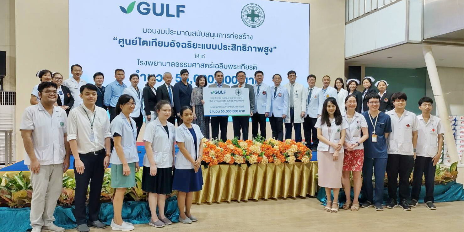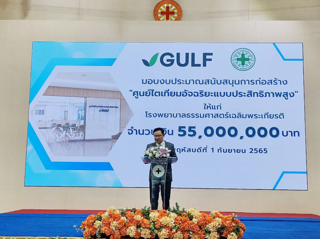 บริษัท กัลฟ์ เอ็นเนอร์จี ดีเวลลอปเมนท์ จำกัด (มหาชน) (GULF) ตระหนักถึงความสำคัญของปัญหานี้ จึงมอบเงินจำนวน 55 ล้านบาทแก่รพ.ธรรมศาสตร์เฉลิมพระเกียรติ เพื่อสนับสนุนการก่อสร้าง “ศูนย์ไตเทียม” ที่มีเครื่องฟอกไตประสิทธิภาพสูง (On-line Hemodiafiltration) จำนวน 30 เครื่อง เพื่อให้ผู้ป่วยยากไร้ที่เป็นโรคไตวายเรื้อรังได้เข้าถึงการรักษาที่ทั่วถึงและได้มาตรฐาน โดยมุ่งเป็น Center of Excellence ที่รองรับผู้ป่วยโรคไตและผู้ป่วยบำบัดทดแทนไตอย่างครบวงจร ทั้งการฟอกเลือดด้วยเครื่องไตเทียมแบบเฉียบพลัน (Acute Hemodialysis) และแบบเรื้อรัง (Chronic Hemodialysis) การล้างไตผ่านทางช่องท้อง การผ่าตัดปลูกถ่ายไต และการให้บริการทำ Plasmapheresis เป็นต้น นอกจากนี้ศูนย์ฯ จะต่อยอดเป็นสถานที่การเรียนการสอนของนักศึกษาแพทย์ นักศึกษาพยาบาล และแพทย์ประจำบ้านด้านอายุรศาสตร์โรคไต สอดคล้องกับพันธกิจของ GULF ที่มุ่งส่งเสริมด้านสาธารณสุข ควบคู่ไปกับกับพัฒนาคุณภาพชีวิตของคนในชุมชน