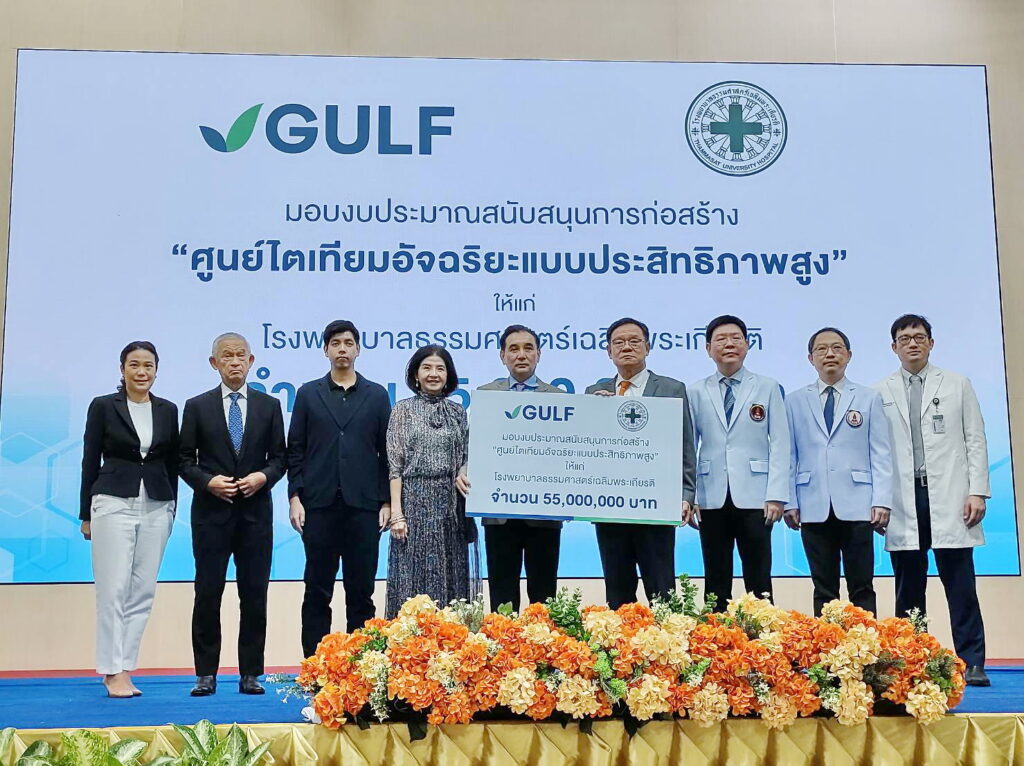 วันที่ 1 กันยายน 2565 ที่อาคารม.ร.ว.สุวพรรณ สนิทวงศ์ โรงพยาบาลธรรมศาสตร์เฉลิมพระเกียรติ ตำบลคลองหนึ่ง อำเภอคลองหลวง จังหวัดปทุมธานี บริษัท กัลฟ์ เอ็นเนอร์จี ดีเวลลอปเมนท์ จำกัด (มหาชน) (GULF) นำโดย นายสารัชถ์ รัตนาวะดี ประธานเจ้าหน้าที่บริหาร มอบเงินสนับสนุนจำนวน 55 ล้านบาทให้แก่ รพ.ธรรมศาสตร์เฉลิมพระเกียรติเพื่อสนับสนุนการก่อสร้างศูนย์ไตเทียม โดยมี ศ.ดร.สุรพล นิติไกรพจน์ ประธานคณะกรรมการบริหาร เป็นผู้รับมอบ โดยมี นางนลินี รัตนาวะดี ที่ปรึกษากิตติมศักดิ์ มูลนิธิพลังงานไทย , นายบุญชัย ถิราติ รองประธานเจ้าหน้าที่บริหาร GULF , นายสิตมน รัตนาวะดี และรศ.นพ.พฤหัส ต่ออุดม ผู้อำนวยการรพ.ธรรมศาสตร์เฉลิมพระเกียรติ และ ผศ.นพ.ปรีดิ์ นิมมานนิตย์ ผู้ช่วยผู้อํานวยการฝ่ายวางแผนและงบประมาณ รพ.ธรรมศาสตร์เฉลิมพระเกียรติ เป็นสักขีพยาน