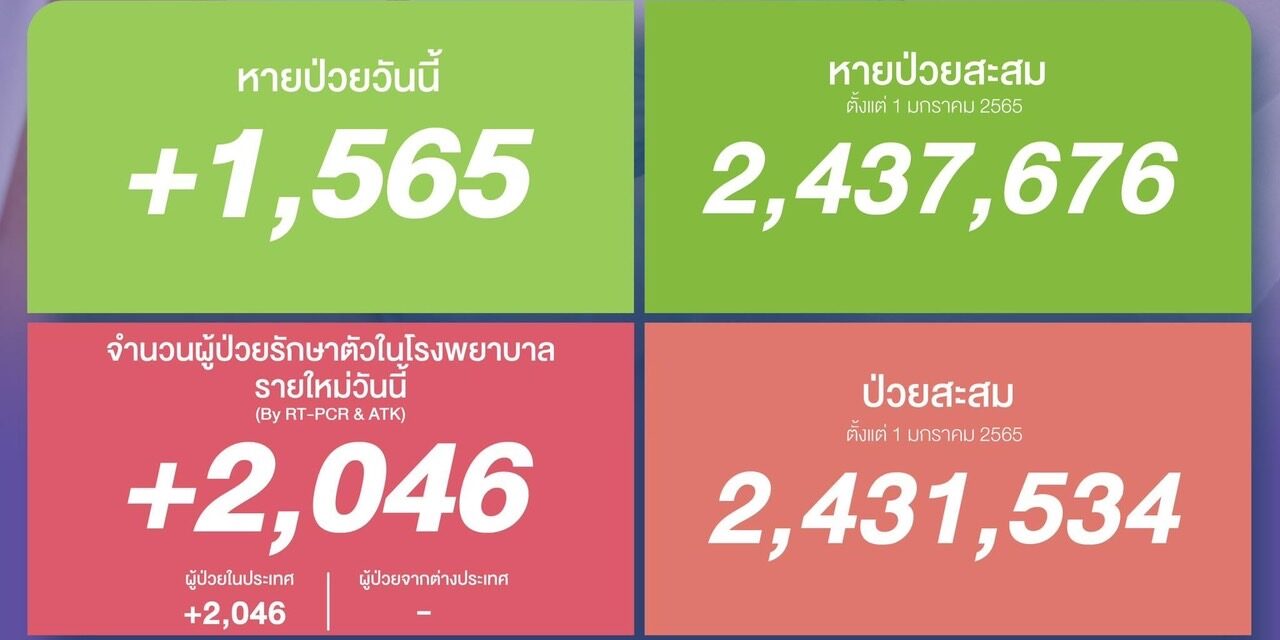 หายป่วยสะสม 2,437,676 ราย (ตั้งแต่ 1 มกราคม 2565)