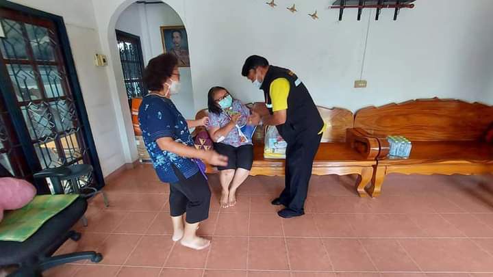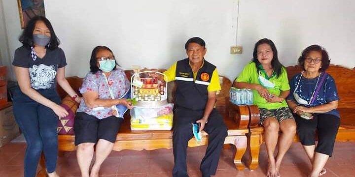 พี่ จุฑาทิพย์ พิมพ์พนิตย์ ซึ่ง ประสบอุบัติเหตุ ทางรถจักรยานยนต์ ได้มอบ กระเช้าถุงยังชีพ น้ำดื่ม เพื่อเป็นการเยี่ยมเยียนให้กำลังใจ และเป็นการช่วยเหลือเบื้องต้น
