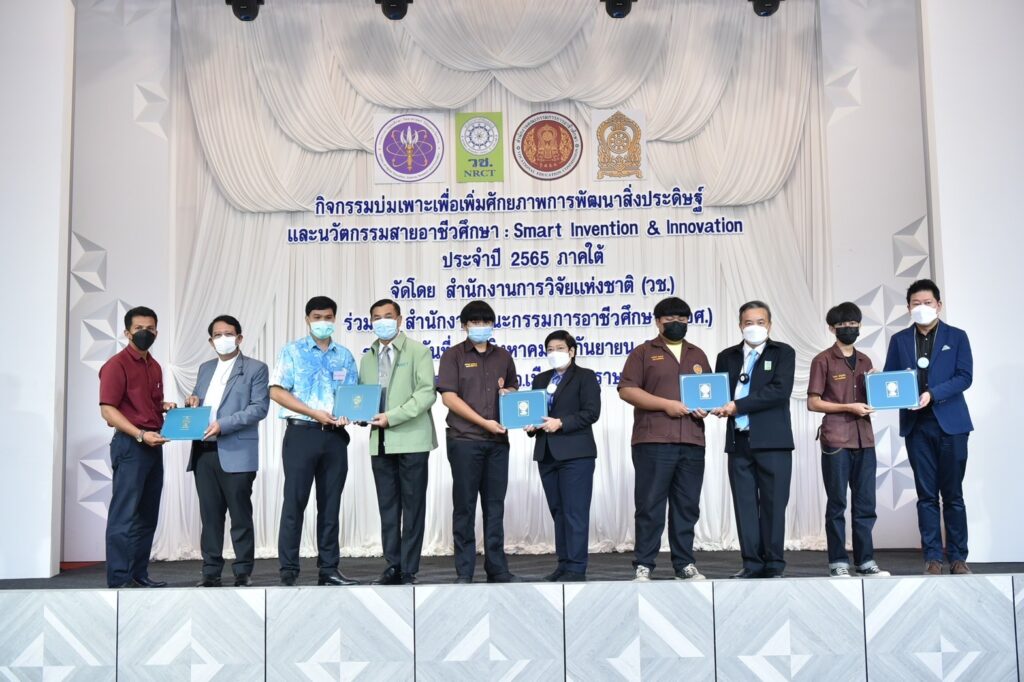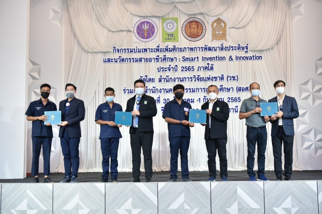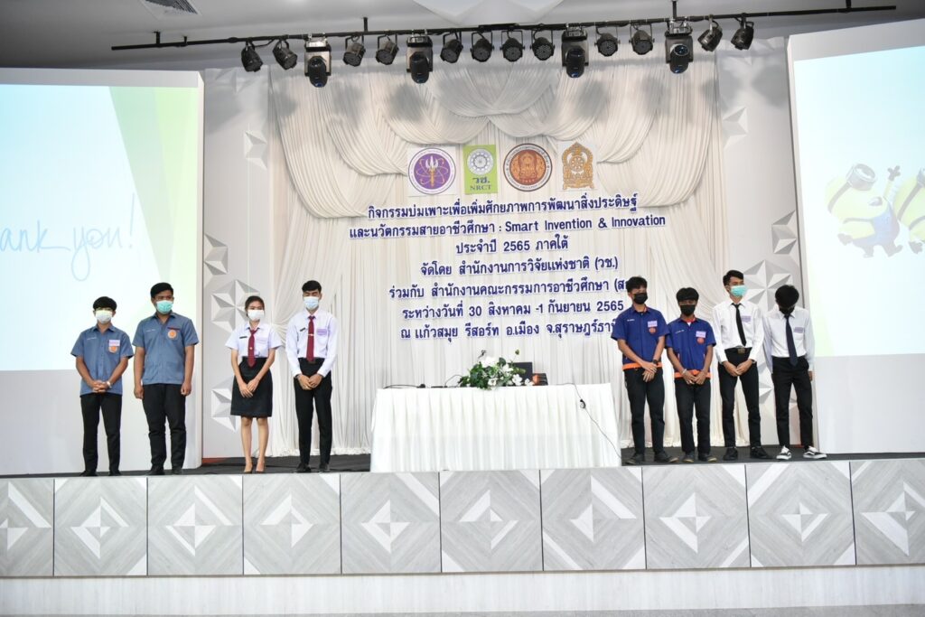 (วช.) ร่วม (สอศ.) จัดกิจกรรม “การบ่มเพาะเพิ่มศักยภาพการพัฒนาสิ่งประดิษฐ์และนวัตกรรมสายอาชีวศึกษา : Smart Invention & Innovation ภาคใต้” ระหว่างวันที่ 30 สิงหาคม–1 กันายน 2565 ณ แก้วสมุย รีสอร์ท จังหวัดสุราษฎร์ธานี เพื่อส่งเสริมและสนับสนุนการพัฒนาศักยภาพของนักเรียน นักศึกษาสายอาชีวศึกษา เพื่อเตรียมความพร้อมให้มีการนำเทคโนโลยีมาใช้ในการพัฒนาประเทศในด้านต่างๆ