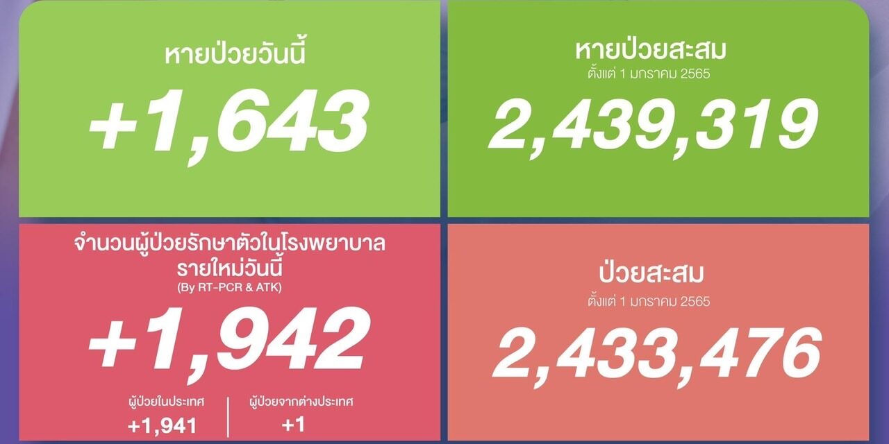 หายป่วยสะสม 2,439,319 ราย (ตั้งแต่ 1 มกราคม 2565)