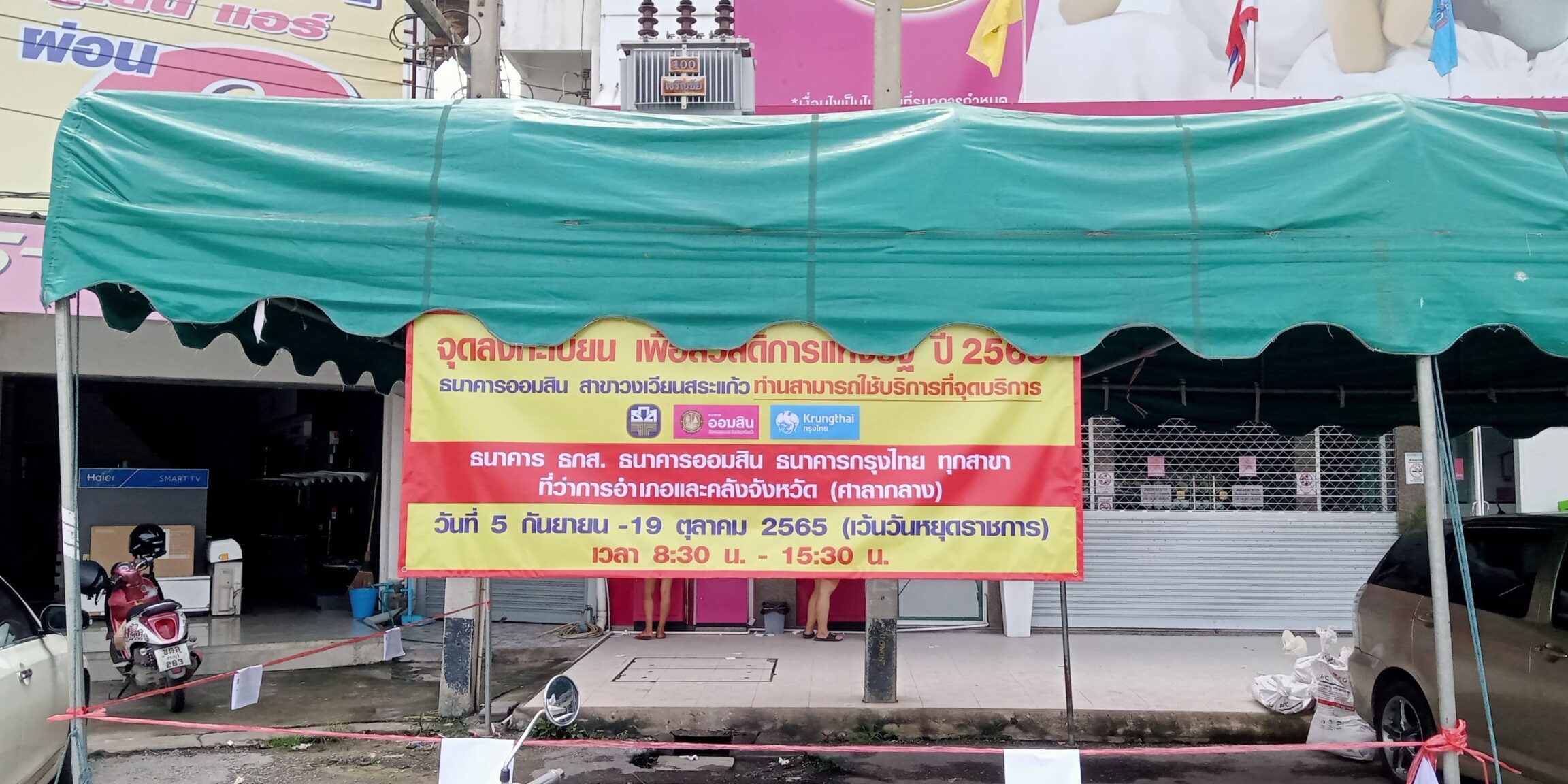 ผู้สื่อข่าวลงพื้นที่ตรวจสอบสถานที่ลงทะเบียนบัตรสวัสดิการแห่งรัฐ 2565 หรือ บัตรคนจน รอบใหม่ สถานที่ลงทะเบียนเตรียมความพร้อม 100% เตรียมรับมวลมวลมหาประชาชนที่จะแห่มาลงทะเบียนการหย่าคึกคักในวันที่ 5 กันยายน2565 ณ หน้าธนาคารกรุงไทย สาขาวงเวียนสระแก้ว และหน้าธนาคารออมสินสาขาวงเวียนสระแก้ว ได้มีเจ้าหน้าที่สำนักงานเทศบาลเมืองลพบุรี ลงมากางเต็นท์ให้ความสะดวกกับประชาชนที่จะมาลงทะเบียนในครั้งนี้ โดยมี นายจำเริญ สละชีพ นายกเทศมนตรีเมืองลพบุรี เป็นผู้สนับสนุนเต็นท์และเก้าอี้ เพื่อให้ความสะดวกของประชาชนและผู้สูงอายุที่จะมาลงทะเบียนในครั้งนี้ คาดว่าจะมีประชาชนเป็นจำนวนมากแห่กันมาลงทะเบียนกันอย่างจำนวนมาก ทางกลับลพบุรีเตรียมความพร้อม 100% เตรียมรับมวลมหาประชาชนที่จะมาลงทะเบียนในครั้งนี้อย่างเต็มที่ได้ประสานงาน หน่วยงานที่เกี่ยวข้องคอยบริการประชาชน และแนะนำการลงทะเบียนในครั้งนี้อย่างใกล้ชิดและคัดกรองสถานการณ์โควิด 19 อีกทางหนึ่ง จะไม่ให้มาแออัดเป็นจำนวนมากจะคัดกรอง