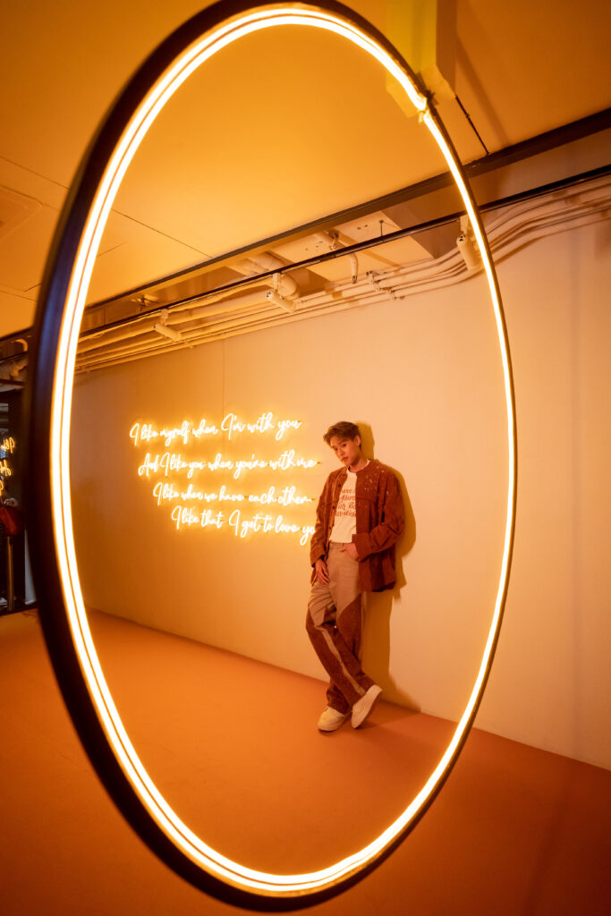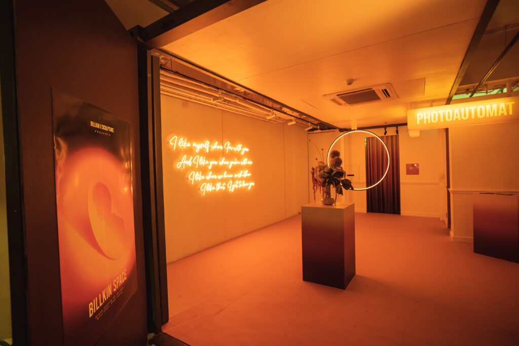 บิวกิ้น เผยว่า “พอเราได้มาทำบริษัทเอง แล้วกำลังจะมีแฟนมีตครั้งแรกในชีวิต เลยรู้สึกว่าอยากทำอะไรให้แฟน ๆ ได้มาเจอกัน ได้มามีเอ็กซ์พีเรียนซ์ร่วมกัน ทาง Billkin Entertianment เลยร่วมกับ Sculpture Bangkok จัดทำ Billkin Space แห่งนี้ขึ้นมา เพื่อให้ทุกคนได้มาเดินดู มาเดินเล่น ถ่ายรูปกัน ซึ่งที่นี่ก็จะมีห้องถ่ายรูป 2 ธีมด้วยกัน คือ Lyrics Random Room ตู้ถ่ายรูปที่ได้แรงบันดาลใจมาจากเพลง ชอบตัวเองตอนอยู่กับเธอครับ ซึ่งแฟน ๆ จะได้ลุ้นไปกับการแรนดอมกรอบรูปลายเนื้อเพลงที่ไม่ซ้ำกัน รวมถึงอาจจะมีลายที่มีผมไปอยู่ในเฟรมอีกด้วย ส่วนอีกห้องหนึ่งจะชื่อว่า Golden Hour Room เป็นธีมเดียวกับแฟนมีตครั้งแรกของผมที่กำลังจะเกิดขึ้นในเดือนตุลาคมที่จะถึงนี้ ก็จะเป็นการจัดแสง มู้ดแอนด์โทนให้อยู่ในช่วงเวลาบรรยากาศนั้นครับ นอกจากนั้นยังมีมุมสวย ๆ ให้ได้ถ่ายรูปกันอีกหลายมุมเลยครับ อย่าง Billkin’s Space Mirror Selfie, Lyrics Wall และ Golden Hour Light Installation ที่ผมคิดว่าทุกคนน่าจะชอบ ผมและทีมตั้งใจมาก ๆ เราเตรียมงานกันนานหลายเดือนเลย อยากให้ทุกคนลองมาดู มาชม และมามีประสบการณ์ร่วมกันกับผม ซึ่งไม่แน่ว่าอาจจะได้เจอผมด้วย ไว้ผมจะแอบมาดูบ่อย ๆ นะครับ Billkin Space เปิดต้อนรับทุกคนแล้วตั้งแต่วันนี้ ที่สยามเซ็นเตอร์ ชั้น 1 แล้วพบกันนะครับ”