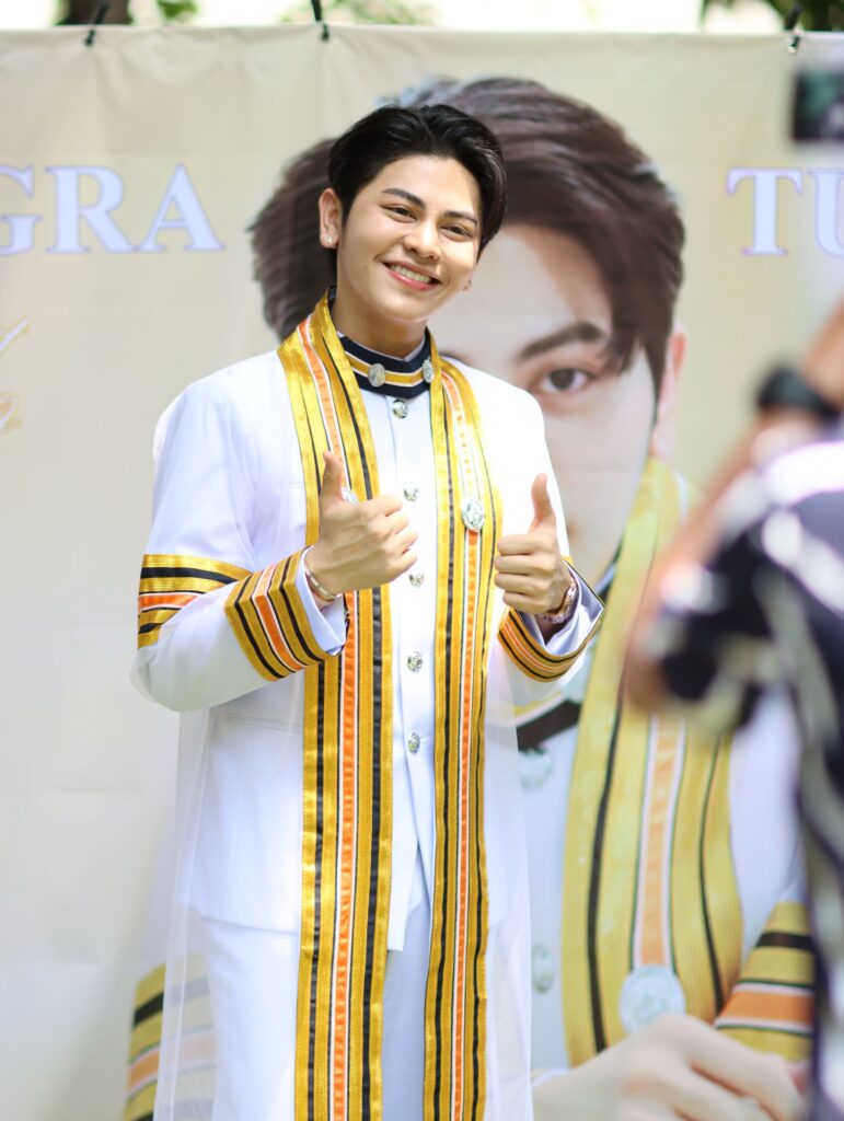 ซึ่งหนุ่มโตโต้ ได้เผยความรู้สึกไว้ว่า “ก็ดีใจมากครับ จริงๆโต้จบมา 3 ปีแล้วครับ แต่ถ้ามองอีกมุมนึง ก็ดีตรงที่ยังไม่ได้รับปริญญาทันที เพราะ ณ ตอนนั้นเรายังไม่มีแฟนๆ มีคนรู้จักเรา แล้วพอมาวันนี้ก็นับว่าเป็นช่วงเวลาที่ได้สะสมแฟนๆ ได้สะสมคนที่รักเรา เพราะนอกจากครอบครัวแล้ว ก็ยังมีแฟนๆที่มาร่วมแสดงความยินดีกับโต้ในวันนี้ หลายๆคนอาจจะไม่ได้มา ก็ยังส่งกำลังใจมาให้ มีบูมเชียร์เซอร์ไพรส์ให้ มีจัดเตรียมบูธถ่ายรูปและพวงมาลัยมาร่วมแสดงความยินดีกัน ประทับใจมากๆครับ(ยิ้ม) ”