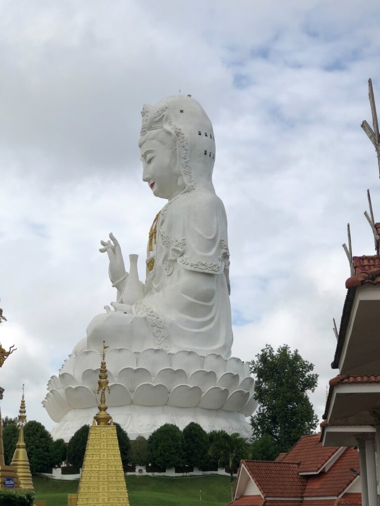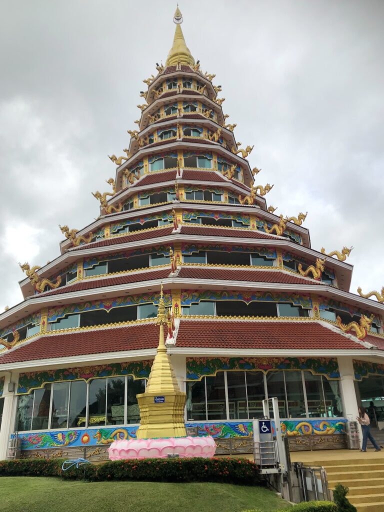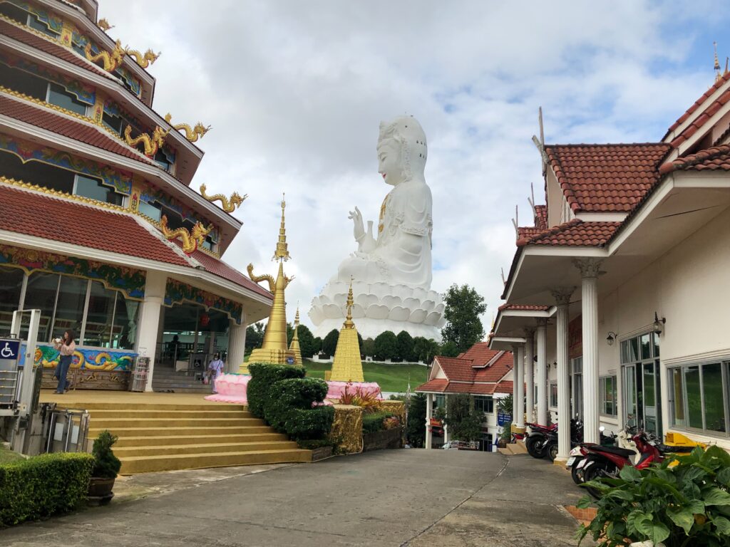 วัดห้วยปากก้างตั้งอยู่ที่ตำบลริมกก อำเภอเมือง จังหวัดเชียงราย เป็นวัดเก่าแก่ ในจังหวัดเชียงราย ตั้งอยู่บนเขามีภูเขารายล้อม เห็นทิวทัศน์ที่สวยงาม สิ่งซึ่งโดดเด่นของวัดนี้คือ พบโชคธรรมเจดีย์ รูปทรงแปลกตา เป็นทรงแหลมผสมผสานระหว่าง ศิลปะจีนและล้านนา หลังคาสีแดง มีรูปปั้นมังกรทอดยาวทั้งสองข้างบันได ภายในเจดีย์ ประดิษฐานพระพุทธรูป และพระอรหันต์ต่างๆ และเป็นที่ประดิษฐ์ฐาน เจ้าแม่กวนอิมแกะสลักจากไม้จันทร์หอม องค์ใหญ่รวมทั้งรูปปั้นเจ้าแม่กวนอิมสีขาวองค์ใหญ่ และโบสถ์สีขาวที่งดงามด้วยลวดลายรูปปูนปั้นสุดอลังการ