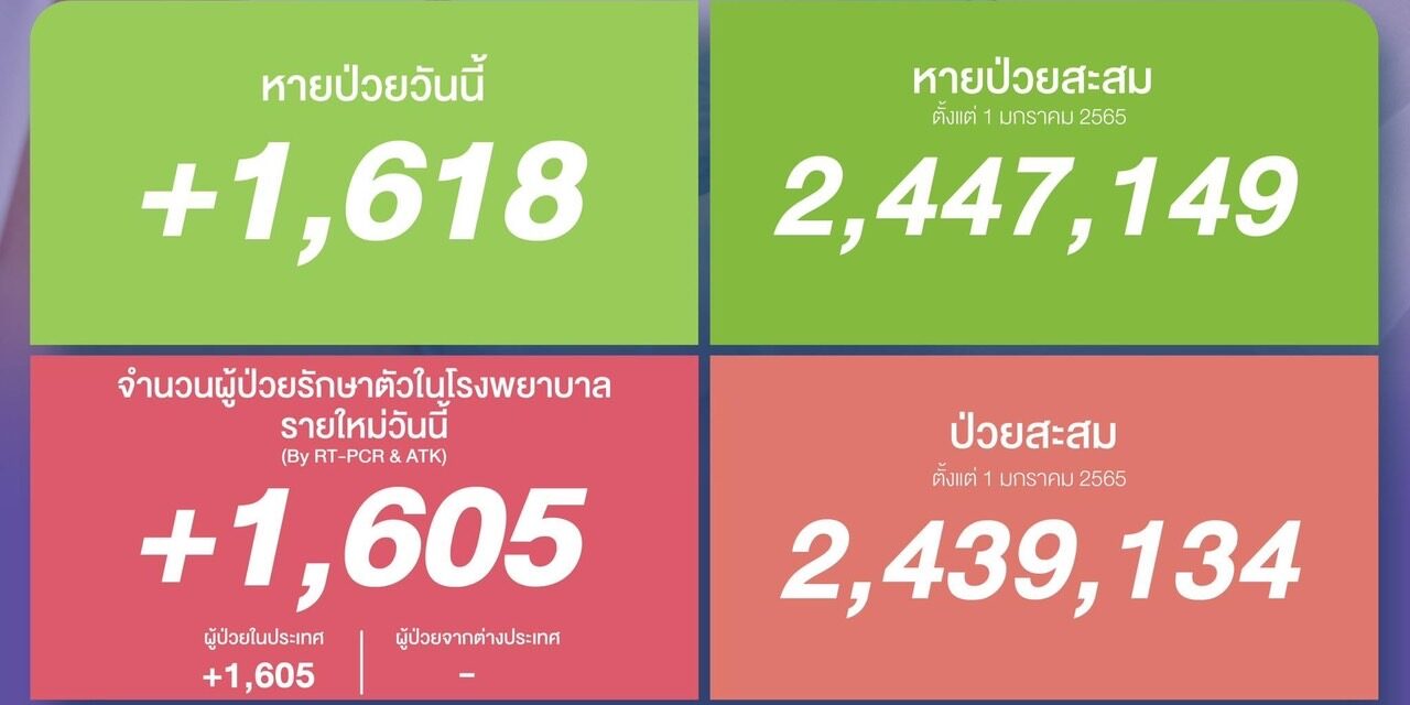 หายป่วยสะสม 2,447,149 ราย (ตั้งแต่ 1 มกราคม 2565)