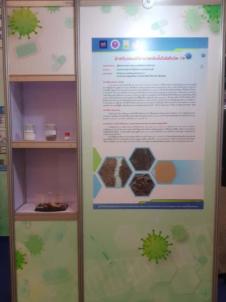 ดร.วิภารัตน์ ดีอ่อง ผู้อำนวยการสำนักงานการวิจัยแห่งชาติ (วช.) กล่าวว่า (วช.) ซึ่งเป็นองค์กรสำคัญของรัฐ ที่ให้การสนับสนุนผลงานวิจัยและนวัตกรรมต่างๆ ที่เป็นประโยชน์กับประชาชน สามารถต่อยอดในเชิงพาณิชย์ เสริมคุณภาพชีวิตและสิ่งแวดล้อม รวมถึงนำไปเป็นองค์ความรู้ในภาคการผลิตต่างๆ ในช่วงสถานการณ์โควิด-19 ที่ผ่านมา ทาง (วช.) ให้การสนับสนุนงานวิจัยและนวัตกรรมต่างๆ ที่เกี่ยวข้องกับการป้องกัน เยียวยารักษาผู้ติดเชื้อโควิด-19 รวมไปถึงผลงานการพัฒนาผ้าชนิดไม่ถักไม่ทอที่สามารถยับยั้งเชื้อไวรัสโควิด-19 สำหรับชุดป้องกันส่วนบุคคลทางการแพทย์ จากมหาวิทยาลัยเทคโนโลยีพระจอมเกล้าธนบุรี