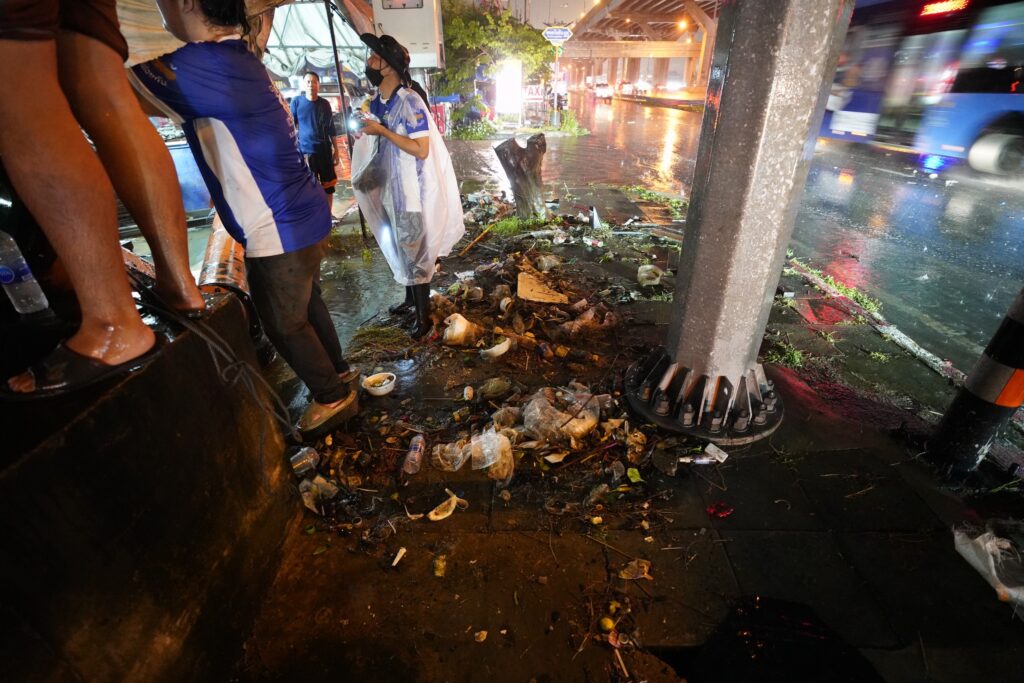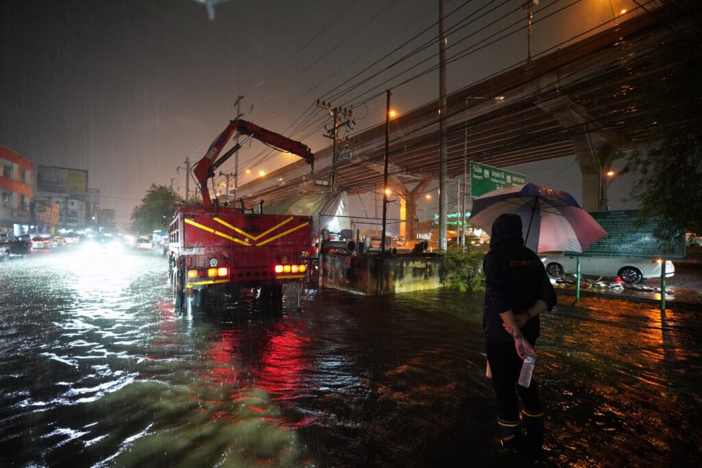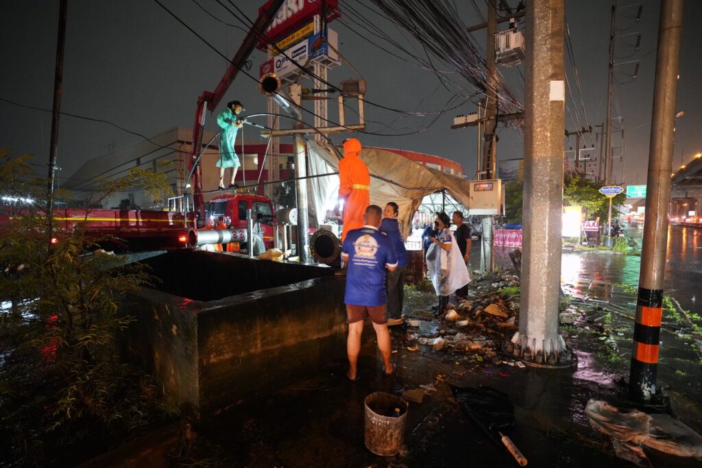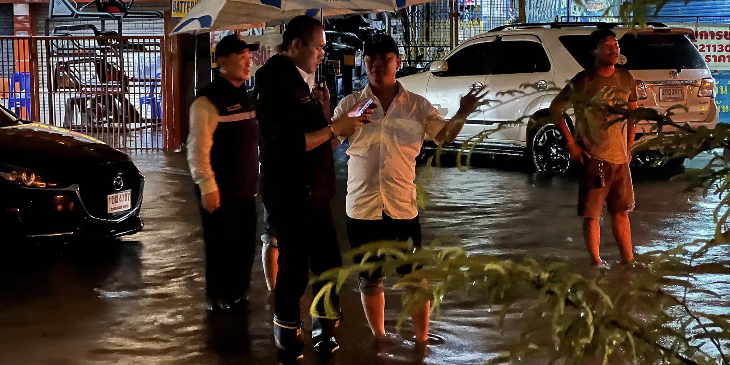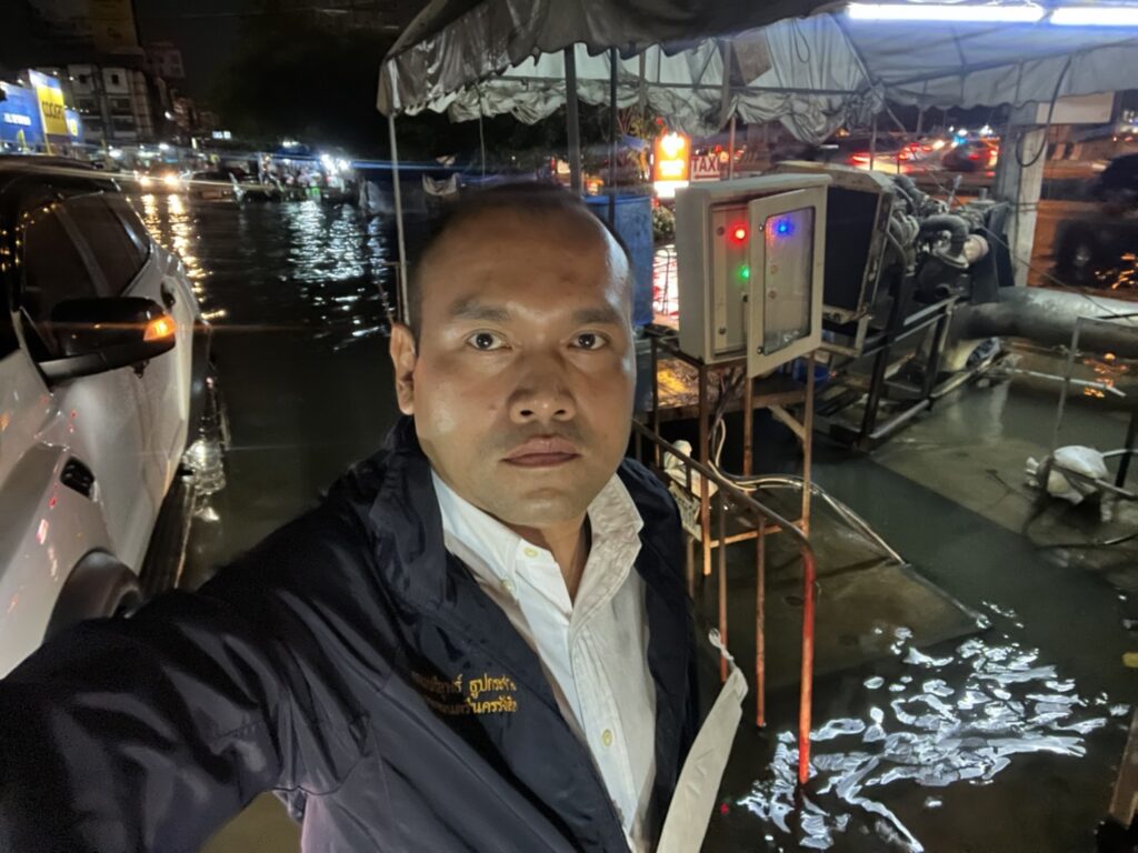 ร้อยตำรวจเอก ดร.ตรีลุพธ์ ธูปกระจ่าง นายกเทศมนตรีนครรังสิต กล่าวว่า เมื่อเวลาช่วงเย็นจนถึง 2 ทุ่ม มีปริมาณฝนตกจำนวนมาก วันนี้ที่คลองรังสิตประยูรศักดิ์ได้สูบน้ำจนมีระดับที่ 1.39 เมตร ในช่วงบ่ายน้ำได้ขึ้นเกินกว่า 1.4 เมตร ส่วนในช่วงเย็นระดับน้ำได้สูงขึ้นมาที่ 1.5 เมตร แต่ปริมาณน้ำด้านนอกอยู่ที่ 1.9 เมตร ปัญหาก็คือท่อระบายน้ำที่เรามีลงสู่คลองรังสิตประยูรศักดิ์ ระดับน้ำได้ขึ้นมาสูงและดันท่อ เราได้ทำการเร่งสูบน้ำด้วยเครื่องสูบน้ำทุกตัวของเทศบาล นอกจากนี้ยังพบขยะเข้าไปอุดตันในเครื่องสูบน้ำ ทำให้เครื่องสูบน้ำมีปัญหา จากเจ้าหน้าที่ของเทศบาลนครรังสิตกำลังแก้ไขโดยด่วน ขอความร่วมมือพี่น้องประชาชนช่วยกันดูแลอย่าให้ขยะล้นอีก รวมถึงฝากเตือนพี่น้องประชาชนให้เก็บสิ่งของขึ้นที่สูงไว้ก่อน เพราะว่าปริมาณน้ำที่เกิดขึ้นสูง และมากรวมถึงฝนจะมาอีกหนึ่งรอบ ในวันพรุ่งนี้ที่เราคาดการณ์ไว้ก็จะมีฝนตกอีก ขอให้ทุกคนระมัดระวัง โดยเราจะทำงานอย่างเต็มที่.