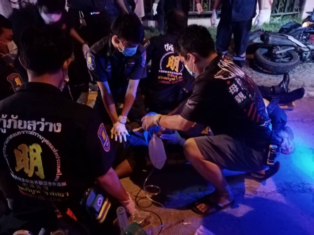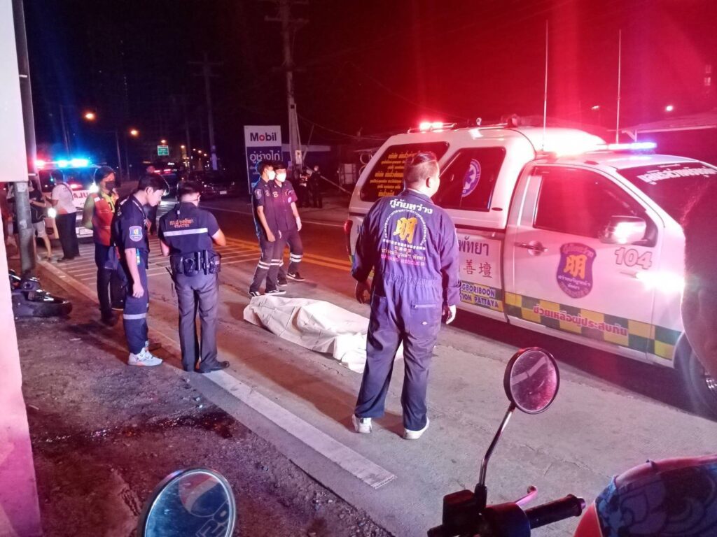 เวลา 01.30 น.วันที่ 6 ก.ย.65 กู้ภัยสว่างบริบูรณ์ฯเมืองพัทยา รับแจ้งอุบัติเหตุรถจักรยานยนต์ชนเสาไฟฟ้ามีผู้เสียชีวิต1ราย บาดเจ็บ1ราย เหตุเกิด ซ.วัดบุญกาญจนาราม ต.หนองปรือ จ.ชลบุรี อาสาฯตรวจสอบ ที่เกิดเหตุพบรถจักรยานยนต์ CBR 125 สีดำ ไม่ติดแผ่นป้ายทะเบียน ชนกับเสาไฟฟ้าสภาพพังยับเยิน พบผู้เสียชีวิตเป็นชาย 1 ราย ตรวจสอบไม่พบเอกสารในตัว อายุประมาณ 25 ปี ถึง 30 ปี สภาพแขนขาหัก อีกรายทราบชื่อ นาย สุพจน์ สิงห์เถื่อน อายุ 42 ปี ได้รับบาดเจ็บสาหัส กู้ภัยปฐมพยาบาลเบื้องต้น ก่อนนำส่งโรงพบาลเมืองพัทยา คนเห็นเหตุการณ์เปิดเผยว่าขณะที่ตนกำลังจอด รถจยย.รอ สัญญาณไฟแดงอยู่นั้น ตนเห็นผู้เสียชีวิต พร้อมคนเจ็บขับขี่รถจักรยานยนต์จากถนน สุขุมวิทจะมาแยกไฟแดง ก่อนจะเสียหลักชนกำแพงบ้านก่อนไปชนเสาไฟ เสียชีวิต เบื้องต้นกู้ภัยแจ้ง สภ.เมืองพัทยา ประสานร้อยเวร เพื่อให้ร้อยเวร ที่เข้าเวรรับทราบเดินทางตรวจสอบที่เกิดเหตุ แต่กลับไม่มาตรวจสอบที่เกิดเหตุ มีคนขับรถร้อยเวรที่ไม่ได้ ใส่เครื่องแบบตำรวจขับรถตำรวจมาจอดก่อนจะนำ โทรศัพท์มาถ่ายรูปที่เกิดเหตุก่อนจะแจ้งกู้ภัย นำร่างผู้เสียชีวิตไปเก็บรักษาใว้ที่โรงพบาลบางละมุง