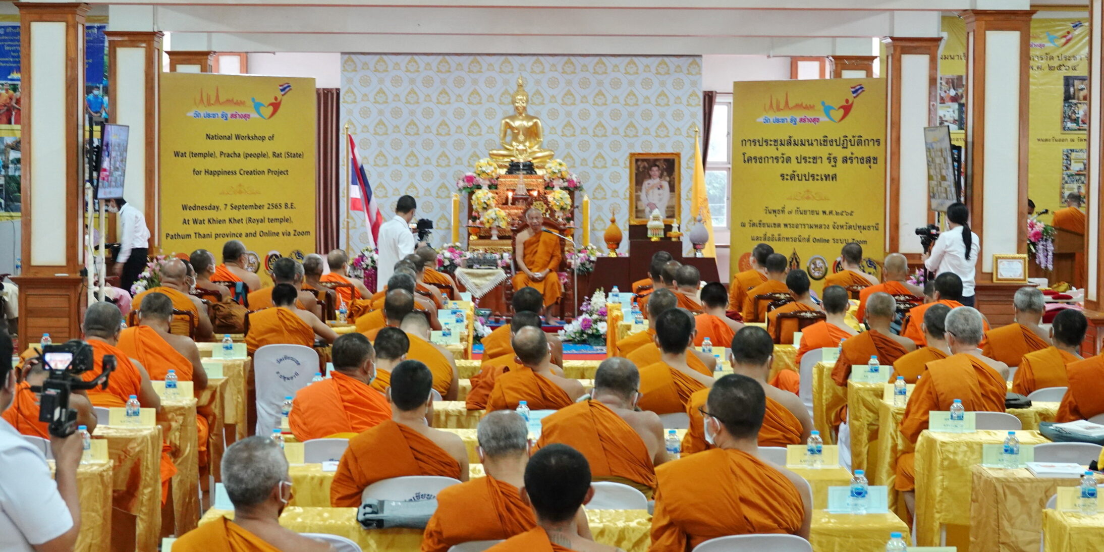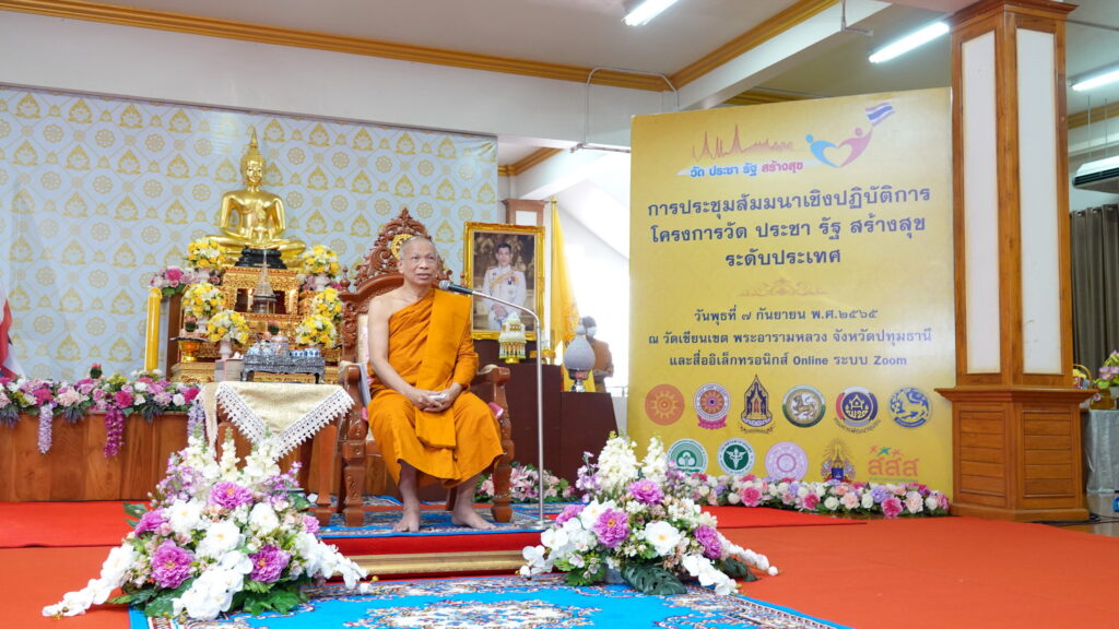 เมื่อเวลา 09.00 น. วันที่ 7 กันยายน 2565 ที่หอประชุมเฉลิมพระเกียรติฯ วัดเขียนเขต พระอารามหลวง ต.บึงยี่โถ อ.ธัญบุรี จ.ปทุมธานี สมเด็จพระมหาวีรวงศ์ กรรมการมหาเถรสมาคม ประธานคณะกรรมการฝ่ายสาธารณูปการของมหาเถรสมาคม เลขานุการสมเด็จพระสังฆราช ผู้ช่วยเจ้าอาวาสวัดราชบพิธสถิตมหาสีมารามราชวรวิหาร เป็นประธานในพิธีเปิด “การประชุมสัมมนาเชิงปฏิบัติการโครงการวัด ประชา รัฐ สร้างสุข ระดับประเทศ ประจำปี พ.ศ.2565” พร้อมบรรยายพิเศษ เรื่อง “ประสิทธิผลการขับเคลื่อนโครงการวัด ประชา รัฐ ทั่วประเทศ”