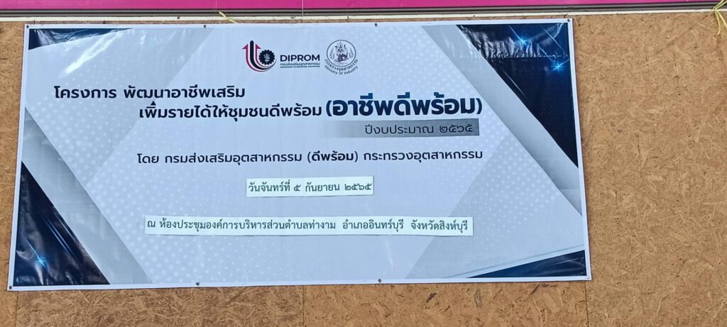 2.ตำบลอินทร์บุรี 3. ตำบลชี้น้ำร้ายจำนวนผู้เข้ารับการอบรม 200 คนจัดโดยกรมส่งเสริมอุตสาหกรรมกระทรวงอุตสาหกรรม