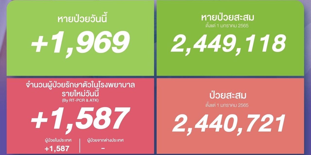 หายป่วยสะสม 2,449,118 ราย (ตั้งแต่ 1 มกราคม 2565)