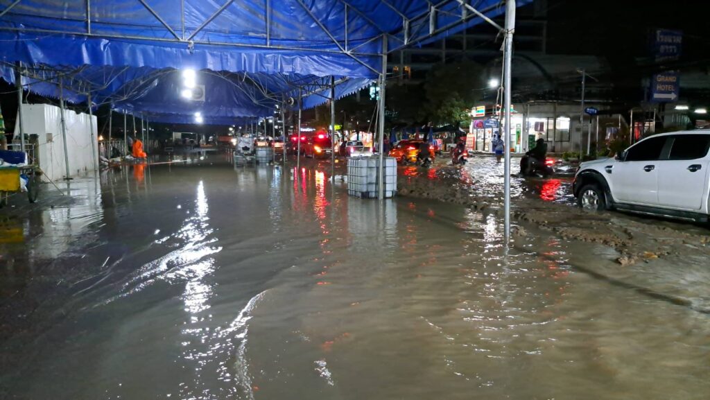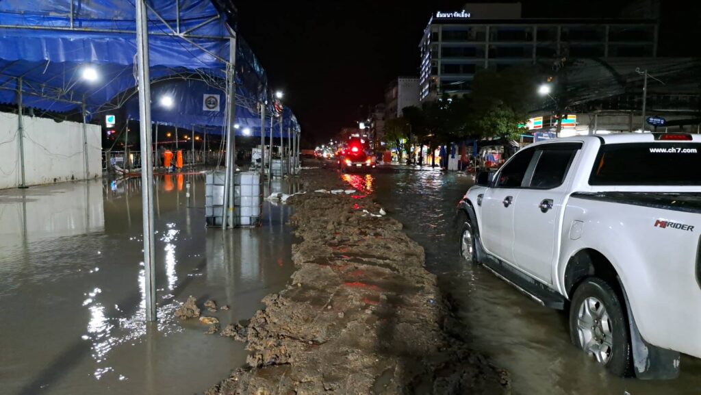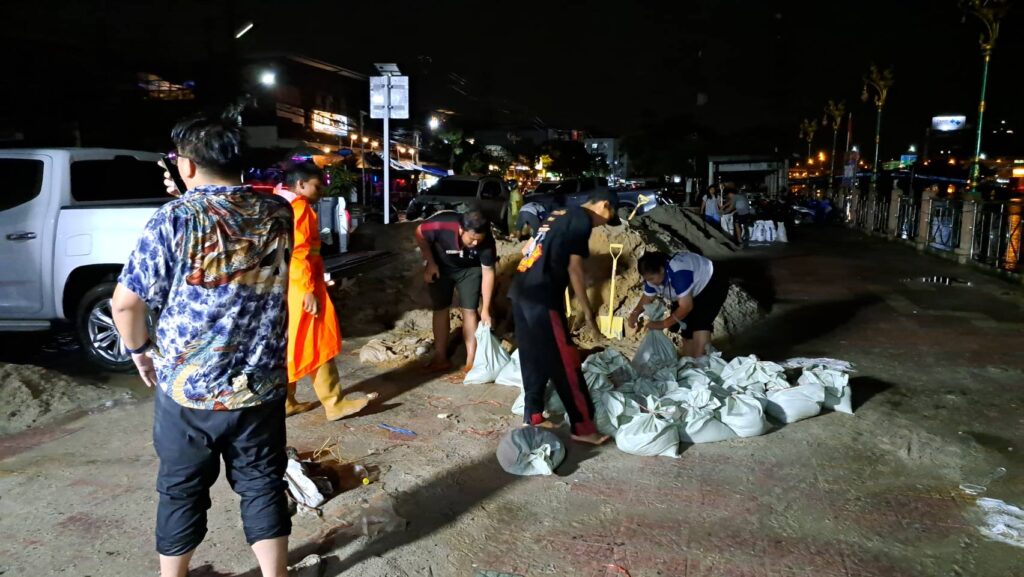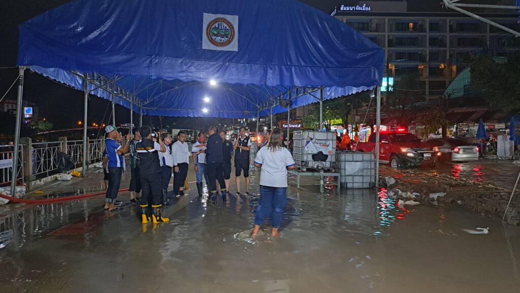 ด้านเจ้าหน้าที่เทศบาลนครรังสิตและชาวบ้านได้ช่วยกันกรอกกระสอบทรายที่บริเวณริมเขื่อนสะพานแดงหลังจากมีน้ำเอ่อล้นเข้ามาเป็นจำนวนมาก เนื่องจากมวลน้ำจากเขื่อนป่าสักชลสิทธิ์ น้ำจาก จ.นครนายก และ กทม. รวมถึงปริมาณน้ำฝนที่ตกลงมาในคืนนี้ ทำให้ไปมารวมกันที่คลองรังสิตประยูรศักดิ์ ซึ่งจะต้องสูบออกแม่น้ำเจ้าพระยาที่ประตูระบายน้ำและสถานีสูบน้ำกึ่งถาวรปากคลองรังสิตประยูรศักดิ์ ตำบลบ้านใหม่ อำเภอเมือง จังหวัดปทุมธานี เพียงจุดเดียว จึงไม่เพียงพอกับการพร่องน้ำ ทำให้น้ำเอ่อล้นคลองรังสิตประยูรศักดิ์จนเข้าท่วมพื้นที่อาศัยของประชาชนแล้ว
