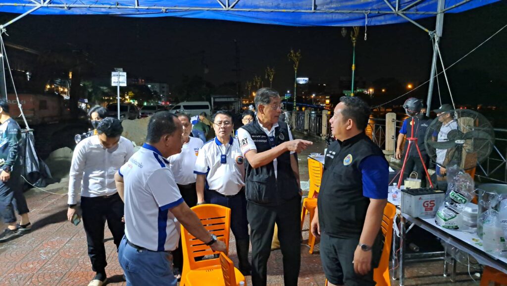 เมื่อเวลา 00.20 น. วันที่ 8 กันยายน 2565 ที่ชุมชนเขื่อนสะพานแดง ตำบลประชาธิปัตย์ อำเภอธัญบุรี จังหวัดปทุมธานี พล.ต.ท.คำรณวิทย์ ธูปกระจ่าง นายก อบจ.ปทุมธานี , ร้อยตำรวจเอก ดร.ตรีลุพธ์ ธูปกระจ่าง นายกเทศมนตรีนครรังสิต ลงพื้น พร้อมเจ้าหน้าที่ฝ่ายป้องกันเร่งเข้าทำแนวคั่นดินป้องกันระดับน้ำจากคลองรังสิตประยูรศักดิ์ที่ล้นข้ามแนวเขื่อนเข้าสู่ถนนและบ้านเรือนประชาชนอย่างเร่งด่วนเนื่องจากน้ำในคลองรังสิตประยูรศักดิ์ได้สูงขึ้นจนเอ่อล้นข้ามถนน ไร้เงาเจ้าหน้าที่ชลประทานและแขวงทางหลวงช่วยเหลือ คาดว่าคืนนี้รังสิตจมน้ำขอให้ประชาชนหลีกเลี่ยงการใช้เส้นทาง