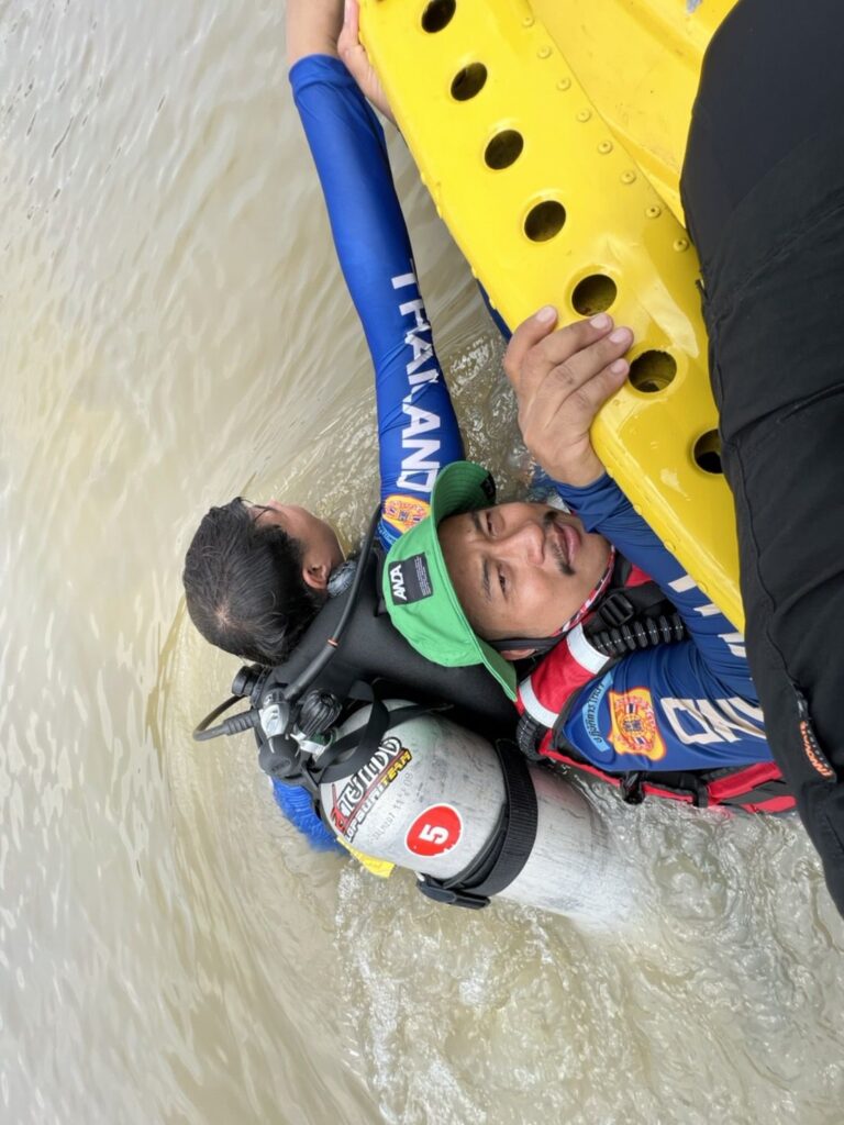 ผู้สื่อข่าวยังรายงานอีกว่า ก่อนที่นายชูชัยจะมีการกระโดดน้ำมีคนเห็นว่านายชูชัยมีอาการผิดปกติเตรียมท่าจะกระโดดน้ำจึงได้แจ้งเจ้าหน้าที่ตำรวจชุดสายตรวจมา และได้เดินทางมาถึงที่เกิดเหตุแต่พยายามเกลี้ยกล่อมเพื่อให้หยุดการกระทำแต่นายชูชัยไม่ยอมจึงได้กระโดดน้ำลงไปตอนนั้น ดต.วัฒนา พันวงษา ผบ.หมู่งานป้องกันและปราบปราม สภ.ท่าหิน มาที่เกิดเหตุและเห็นนายชูชัย ฯได้กระโดดลงไปจึงได้ถอดเครื่องแบบและวิ่งไปขอยืมเรือชาวบ้านพายไปช่วยแต่ไม่เป็นผลสำเร็จ นายชูชัยได้จมหายไปเสียก่อน ต่อมาเจ้าหน้าที่มูลนิธิร่วมกตัญญูช่วยนำเครื่องชุดประดาน้ำลงไปงมหา