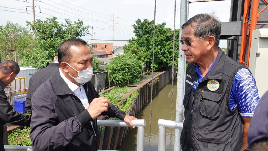 นายประพิศ จันทร์มา อธิบดีกรมชลประทาน กล่าวว่า ในจุดนี้ยังมีเครื่องสูบน้ำที่ยังซ่อมไม่เสร็จ โดยตนเองจะนำเครื่องสูบน้ำจากที่อื่นมาเติม รวมถึงจะแก้ปัญหาบานประตูที่ไม่สามารถเปิดได้เพื่อช่วยระบายน้ำเมื่อระดับน้ำฝั่งแม่น้ำเจ้าพระยาต่ำกว่า ในส่วนของการสูบน้ำหากไม่พอกรมชลประทานจะมีอุปกรณ์สูบน้ำเครื่องที่มาเสริม จากเมื่อวานนี้เท่าที่ทราบ ฝนตกหนักในพื้นที่ ซึ่งก็ได้ติดตามข่าวสารจนถึงช่วงเช้าทราบว่าน้ำได้ลดลงเพียง 5 เซนติเมตร วันนี้เป็นโอกาสดีที่ฝนยังไม่ตก จึงต้องเอาน้ำในคลองออกให้มากที่สุด เพื่อเตรียมรับน้ำฝนที่อาจจะมาอีก คาดว่าฝนจะมาถึงวันที่ 10 จึงต้องเตรียมความพร้อมไว้ให้เต็มที่ลดผลกระทบต่อพี่น้องประชาชน เมื่อมีปัญหาเกิดขึ้นทางกรมชลประทานจะดำเนินการแก้ไขปัญหาให้เร็วที่สุด โดยมีแผนจะนำเครื่องอื่นมาเสริม หรือเร่งซ่อมแซมเครื่องที่เสีย เราจะใช้เครื่องมือในการบริหารจัดการให้เกิดประสิทธิภาพสูงสุด ซึ่งชลประทานมีความพร้อมในเรื่องของเครื่องมือ มีเครื่องสูบน้ำสำรองที่จะติดตั้งเพิ่มประสิทธิภาพในการสูบน้ำ หากในพื้นที่มีการชี้เป้าให้พวกชลประทานทราบว่าตรงไหนที่มีความเดือดร้อน ต้องการสนับสนุนเครื่องมืออะไร ก็ขอให้แจ้งมา พร้อมที่จะช่วยเหลือทันที ขึ้นอยู่กับสถานการณ์ของปริมาณน้ำ ซึ่งยืนยันว่าชป.มีการเตรียมความพร้อมอยู่ตลอดเวลา