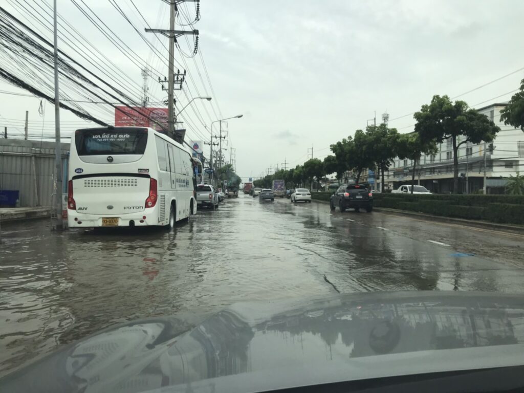 เนื่องจาก จุดนี้ เป็นพื้นที่ต่ำ ลาดเอียง ประกอบกับปริมาณน้ำในคลองประเวศ และคลองต่างๆ มีปริมาณสูง ทำให้ระบายน้ำออกจากถนนลงคลองได้ช้า
