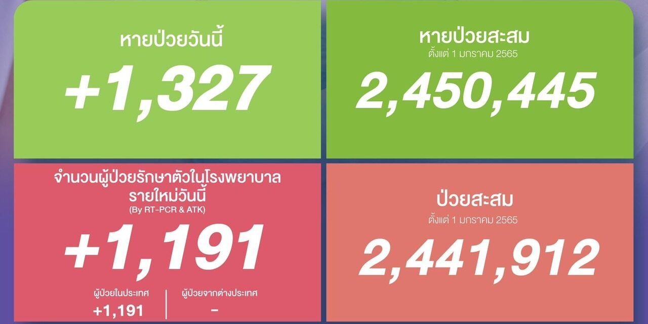 หายป่วยสะสม 2,450,445 ราย (ตั้งแต่ 1 มกราคม 2565)