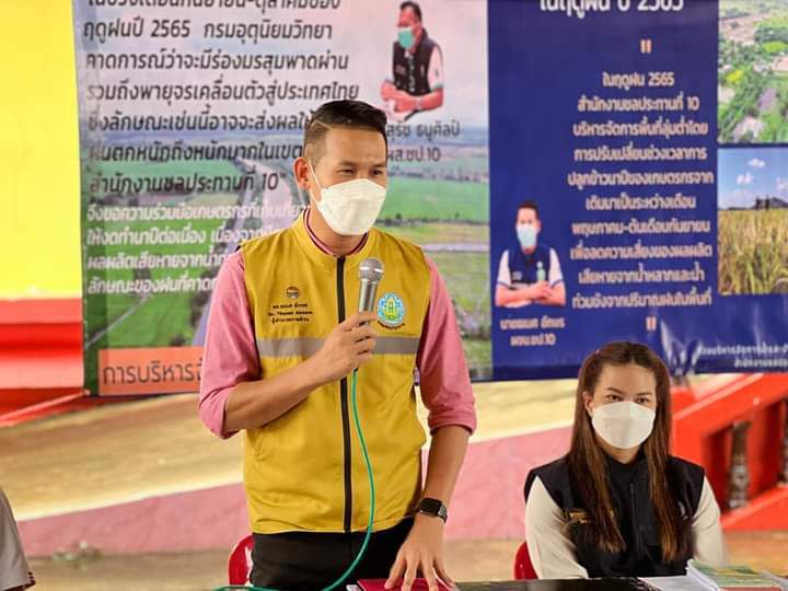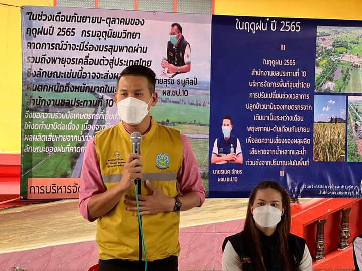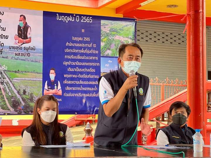 หัวหน้าฝ่ายส่งเสริมและพัฒนาการใช้น้ำ สำนักงานชลประทานที่ 10 นายชุมพล คดีธรรม หัวหน้าฝ่ายส่งน้ำและบำรุงรักษาที่ 1 โครงการส่งน้ำและบำรุงรักษาช่องแค นายบุญรอด ต่วนชัย หัวหน้าฝ่ายจัดสรรน้ำและปรับปรุงระบบชลประทาน นายวิชาญ หัตถินาท หัวหน้าฝ่ายส่งน้ำและบำรุงรักษาที่ 1 โครงการส่งน้ำและบำรุงรักษามหาราช นายเชิดชาย ปุณณะบุตร หัวหน้าฝ่ายจัดสรรน้ำและปรับปรุงระบบชลประทาน และ นายเจนณรงค์ กันทิยะ หัวหน้าฝ่ายส่งน้ำและบำรุงรักษาที่ 2 โครงการส่งน้ำและบำรุงรักษามโนรมย์ ร่วมประชาสัมพันธ์การบริหารจัดการทุ่งลุ่มต่ำในฤดูฝน ปี 2565 ณ วัดเชียงราก ต.ทองเอน อ.อินทร์บุรี จ.สิงห์บุรี โดยมีกลุ่มผู้ใช้น้ำ,เกษตรกร, ตัวแทนองค์การปกครองส่วนท้องถิ่น และหน่วยงานที่เกี่ยวข้องในพื้นที่ให้การต้อนรับและร่วมรับฟังการประชาสัมพันธ์ เพื่อประชาสัมพันธ์แผนและแนวทางในการบริหารจัดการพื้นที่ลุ่มต่ำทุ่งเชียงราก รวมถึงรับฟังความคิดเห็นและข้อเสนอแนะของทุกฝ่ายเพื่อนำไปพิจารณาในการบริหารจัดการน้ำในพื้นที่ให้เกิดประสิทธิภาพสูงสุดต่อไป